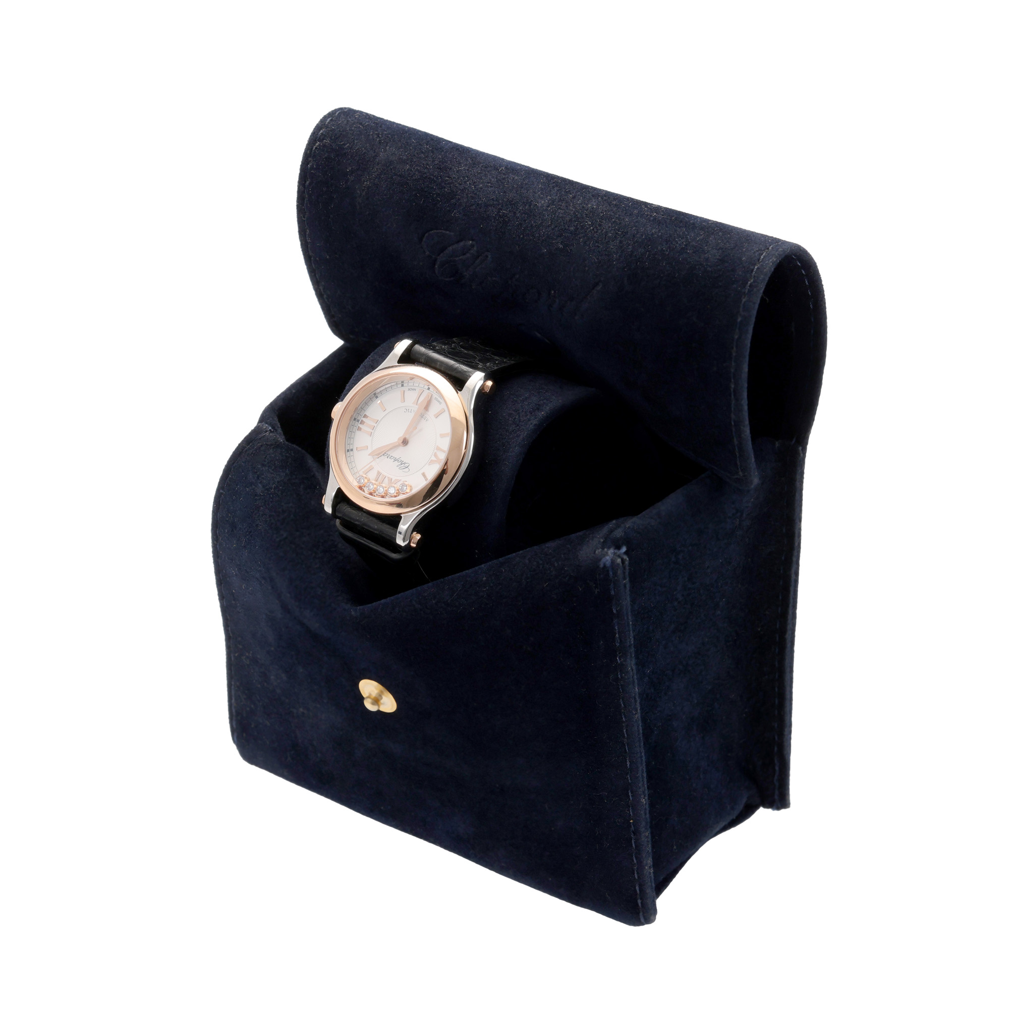 56. Ceas Chopard Happy Sport, din aur și oțel, cu diamante, de mână, de damă, însoțit de borseta originală [Cca. 2020]