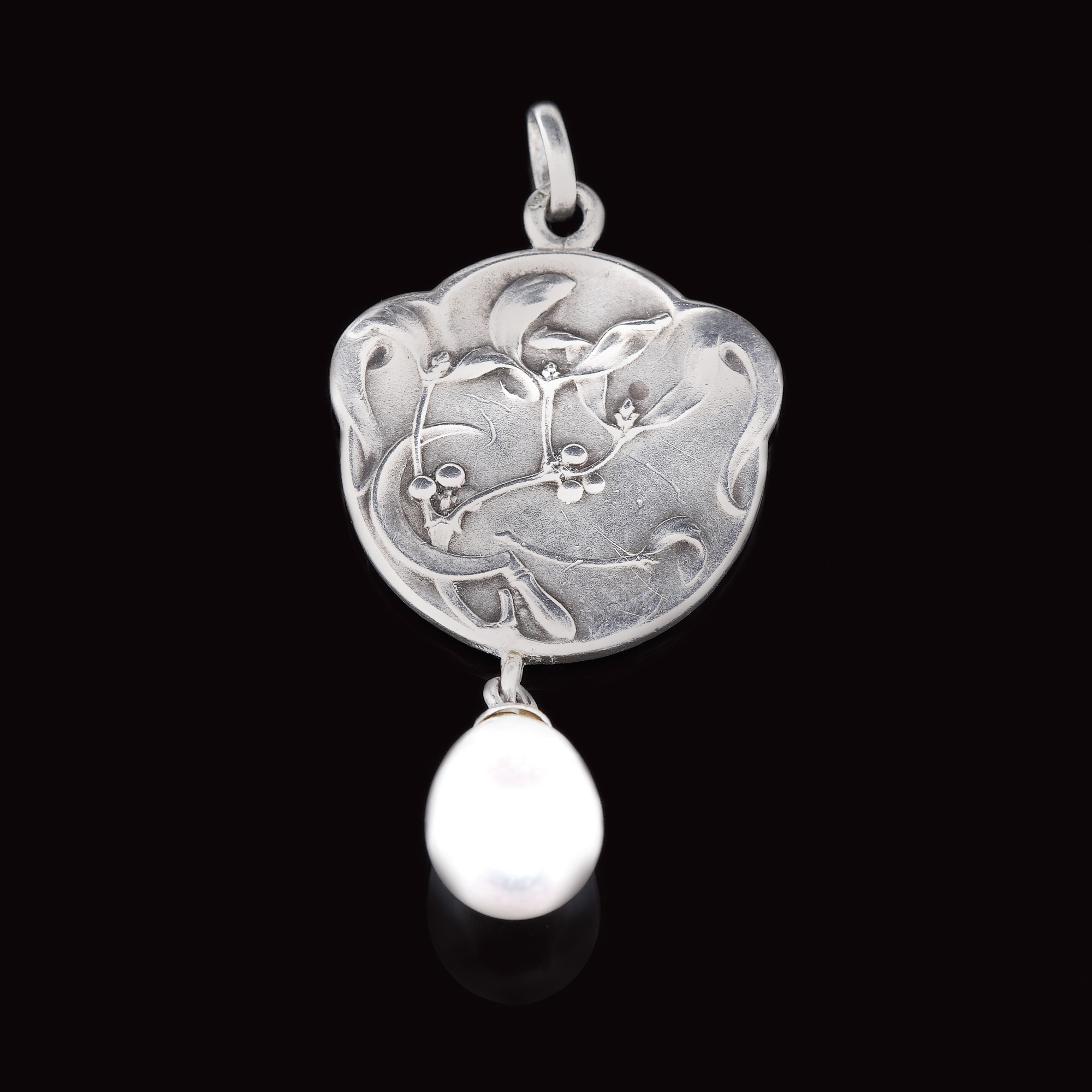 118. Pandantiv Art Nouveau, din argint, designer Edmond Henri Becker, ornat cu perlă, cca. 1910