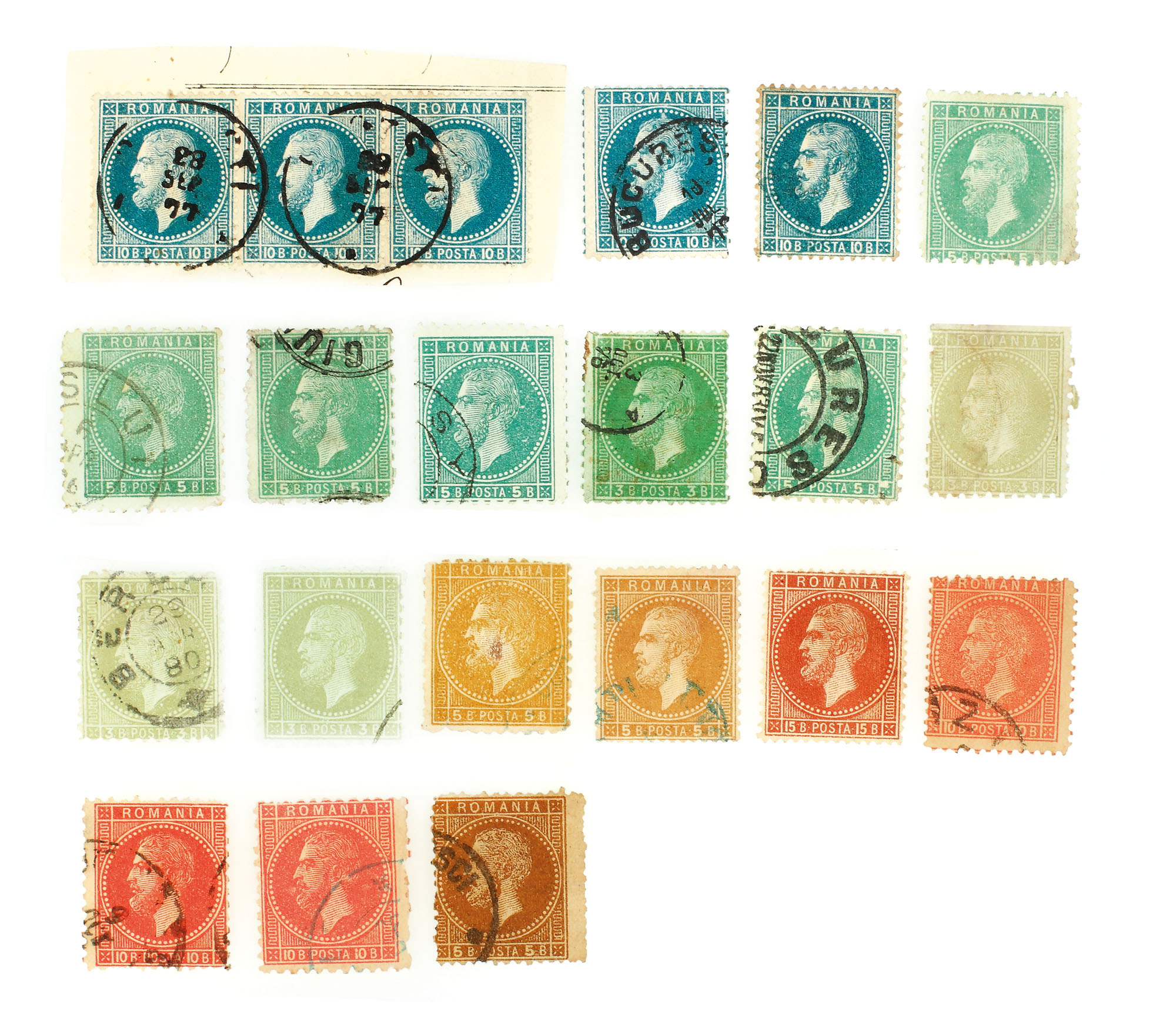 71. Lot format din 21 de mărci ştampilate din emisiunile "Paris" şi "Bucureşti", România, 1872-1880