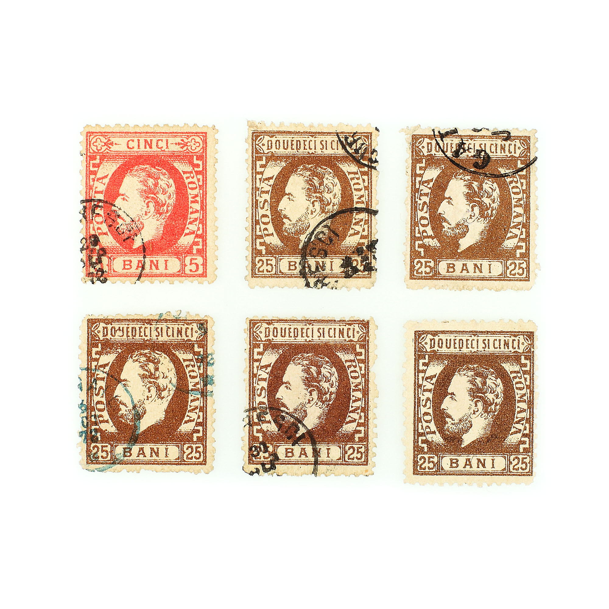 64. Lot format din 6 mărci poştale "Carol cu barbă", România, 1871