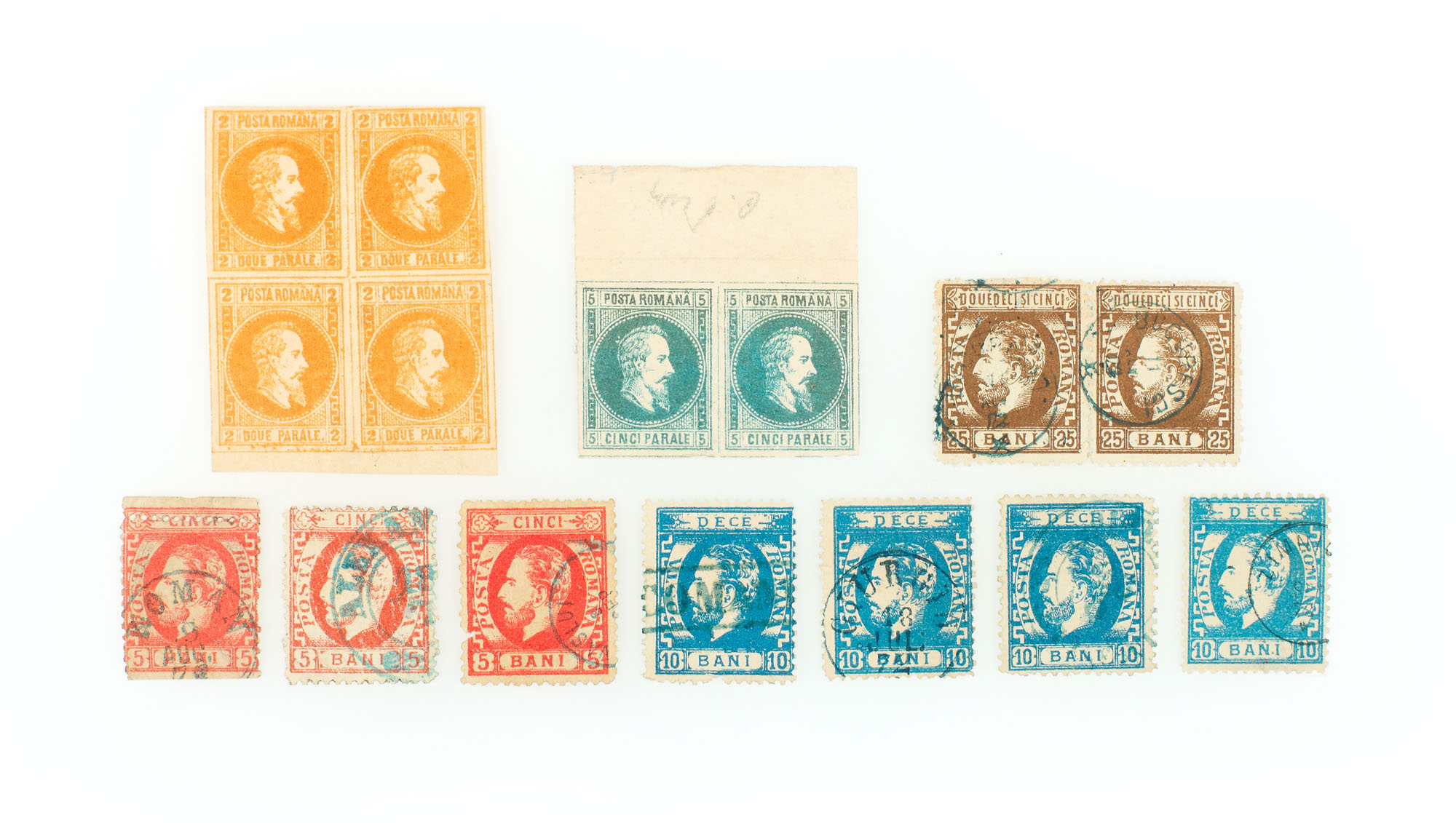 66. Lot format din 9 mărci poştale "Carol cu barbă", 1871 şi 6 mărci poştale "Cuza", România, 1864