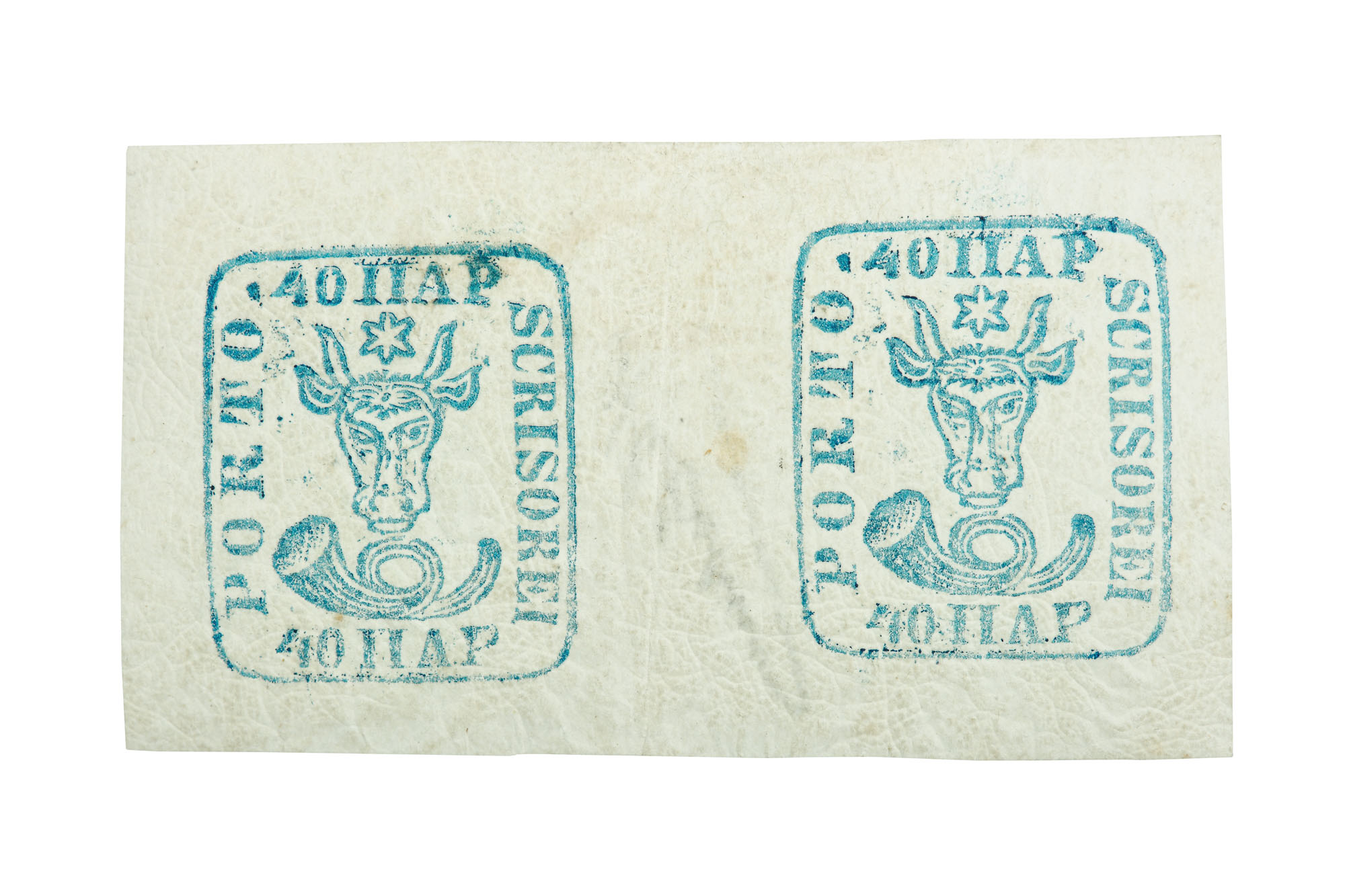 41. Pereche de 2 timbre "Cap de Bour", de 40 de parale, Moldova, 1858