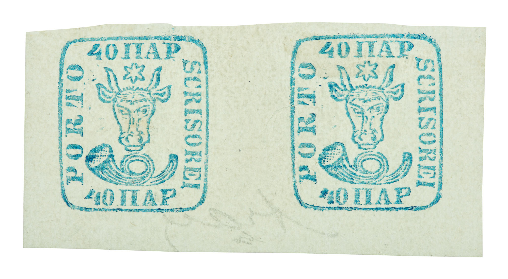 40. Pereche de timbre "Cap de Bour", de 40 de parale, Moldova, 1858