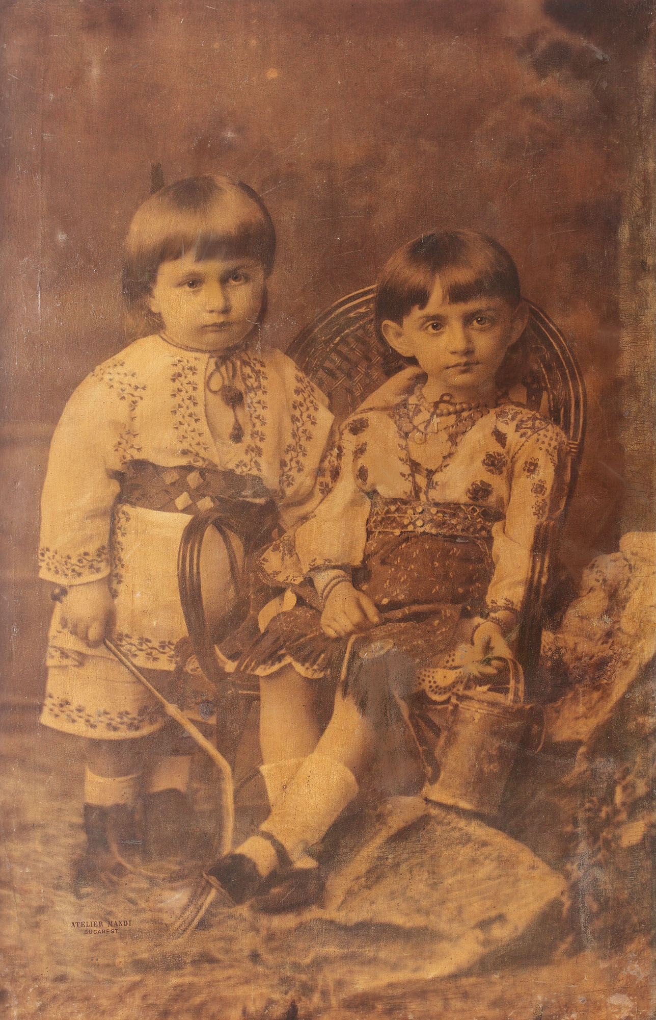 303. Frățiori, inedită fotografie pe pânză, cca. 1910