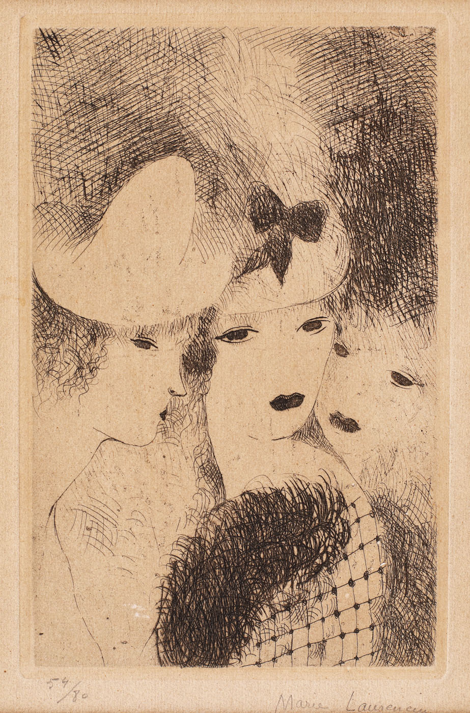 semnat dreapta jos, sub cadru, în creion, "Marie Laurencin"; numerotat stânga jos, sub cadru, "54/80"