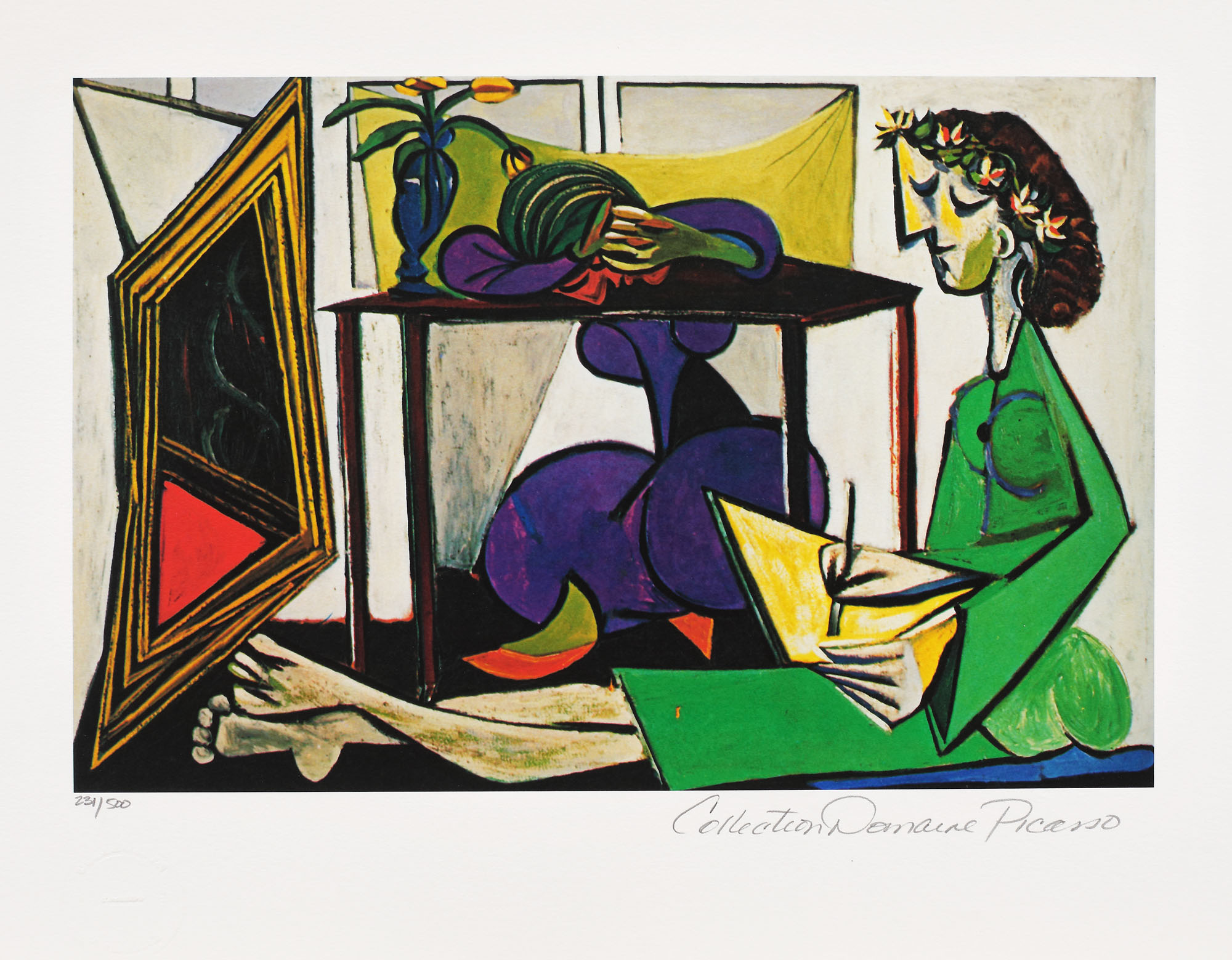 notat dreapta jos, sub cadru, în creion, ”Collection Domaine Picasso”; numerotat stânga jos, sub cadru, în creion, ”231/500”