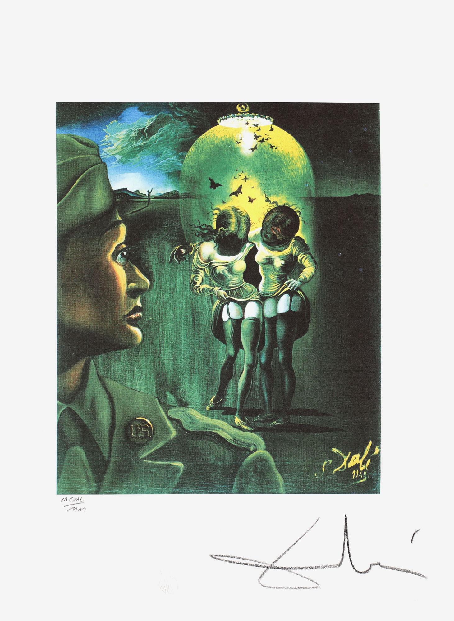 semnat dreapta jos, sub cadru, în creion, ”Dali”; numerotat stânga jos, sub cadru, în creion, ”MCML/MM”; central jos, ștampila editurii, ”G. Dali”