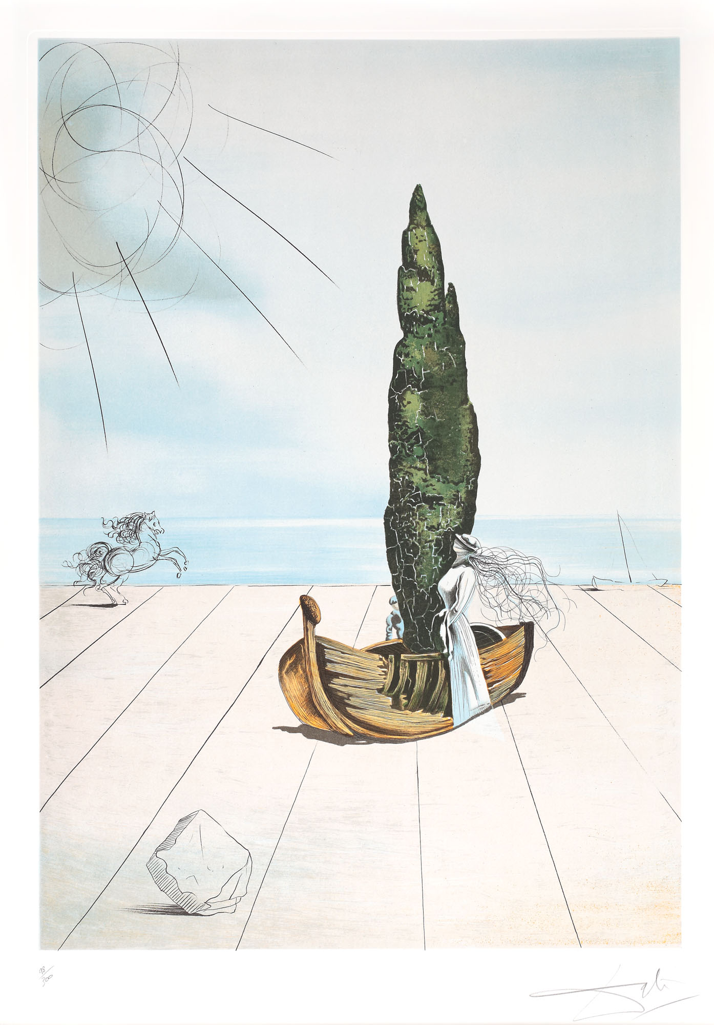 semnat dreapta jos, sub cadru, în creion, ”Dali”; numerotat stânga jos, sub cadru, în creion, ”98/300”