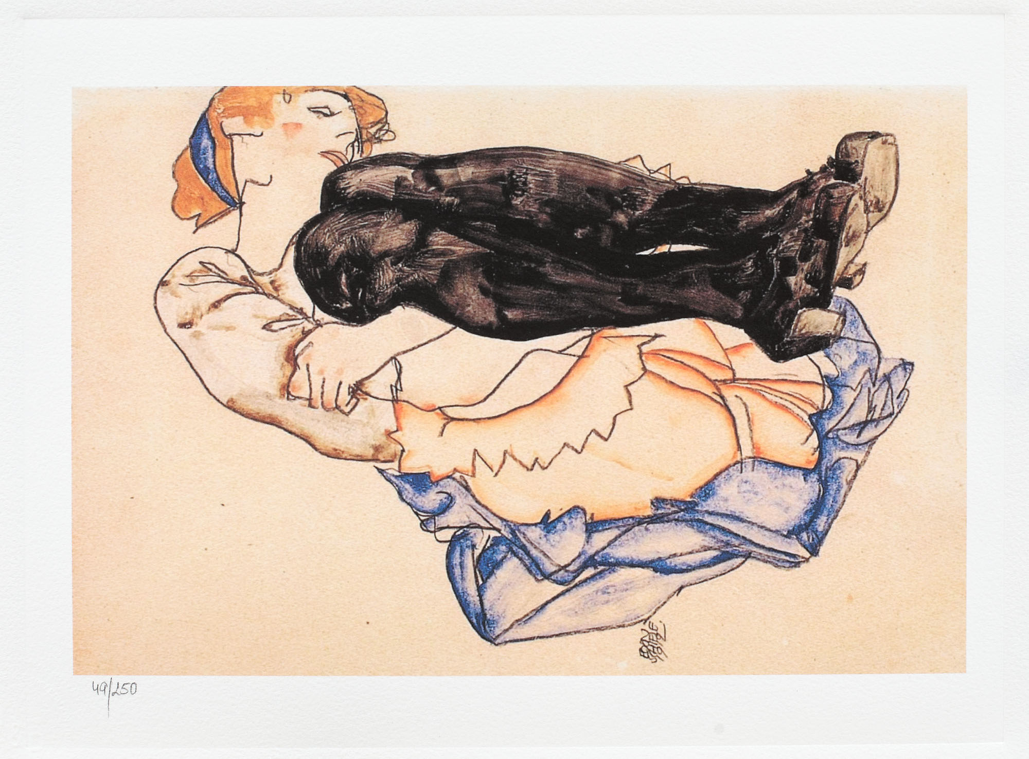 semnat și datat lateral dreapta jos, în placă, ”EGON SCHIELE, 1912”; numerotat stânga jos, sub cadru, în creion, ”49/250”; stânga jos, ștampila editurii, ”D&P CERTIFIED ARTS USA EUROPE SINCE 1997”