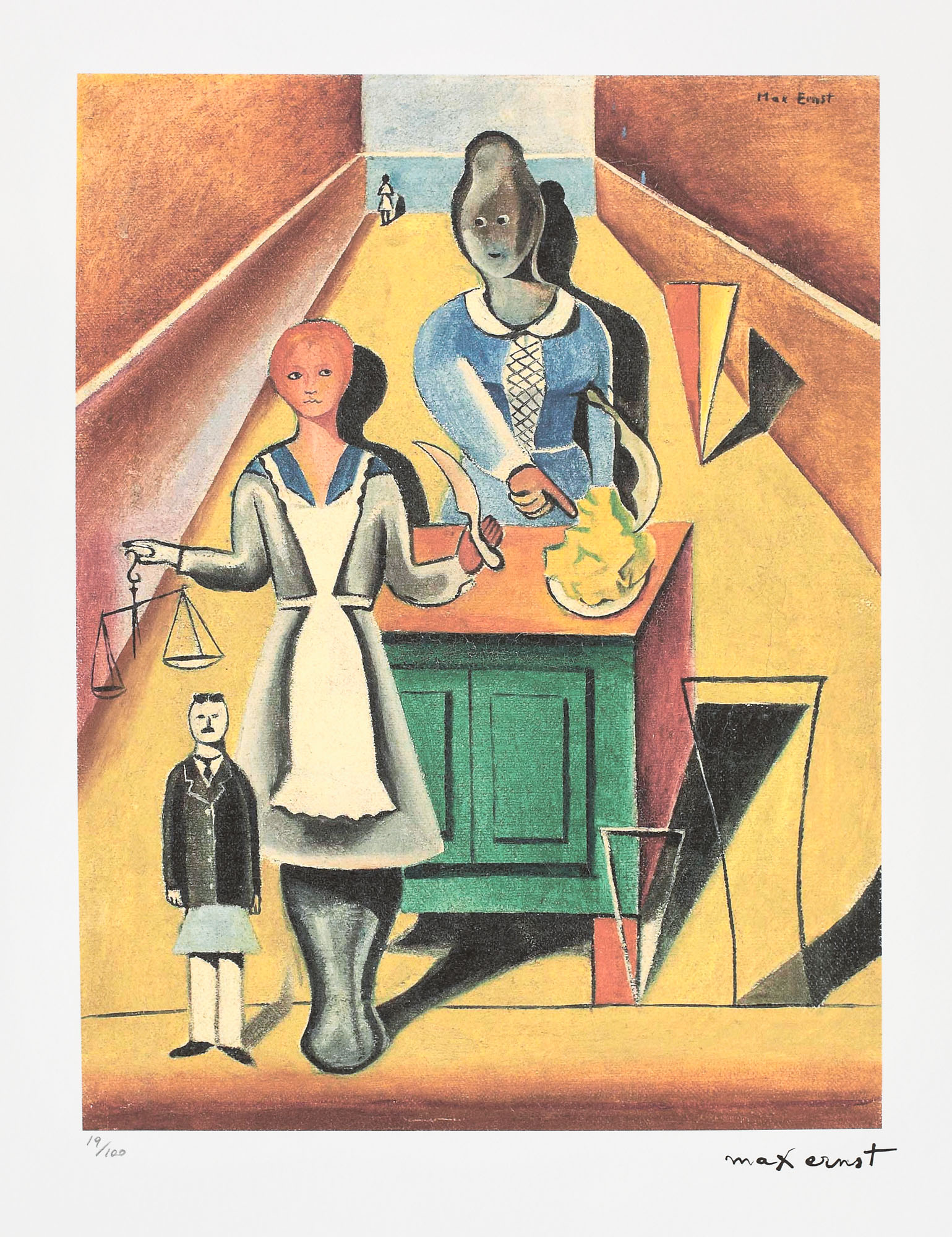 semnat dreapta jos, sub cadru, ”max ernst”; numerotat stânga jos, sub cadru, în creion, ”19/100”; stânga jos, ștampila editurii, ”SPADEM, Paris”