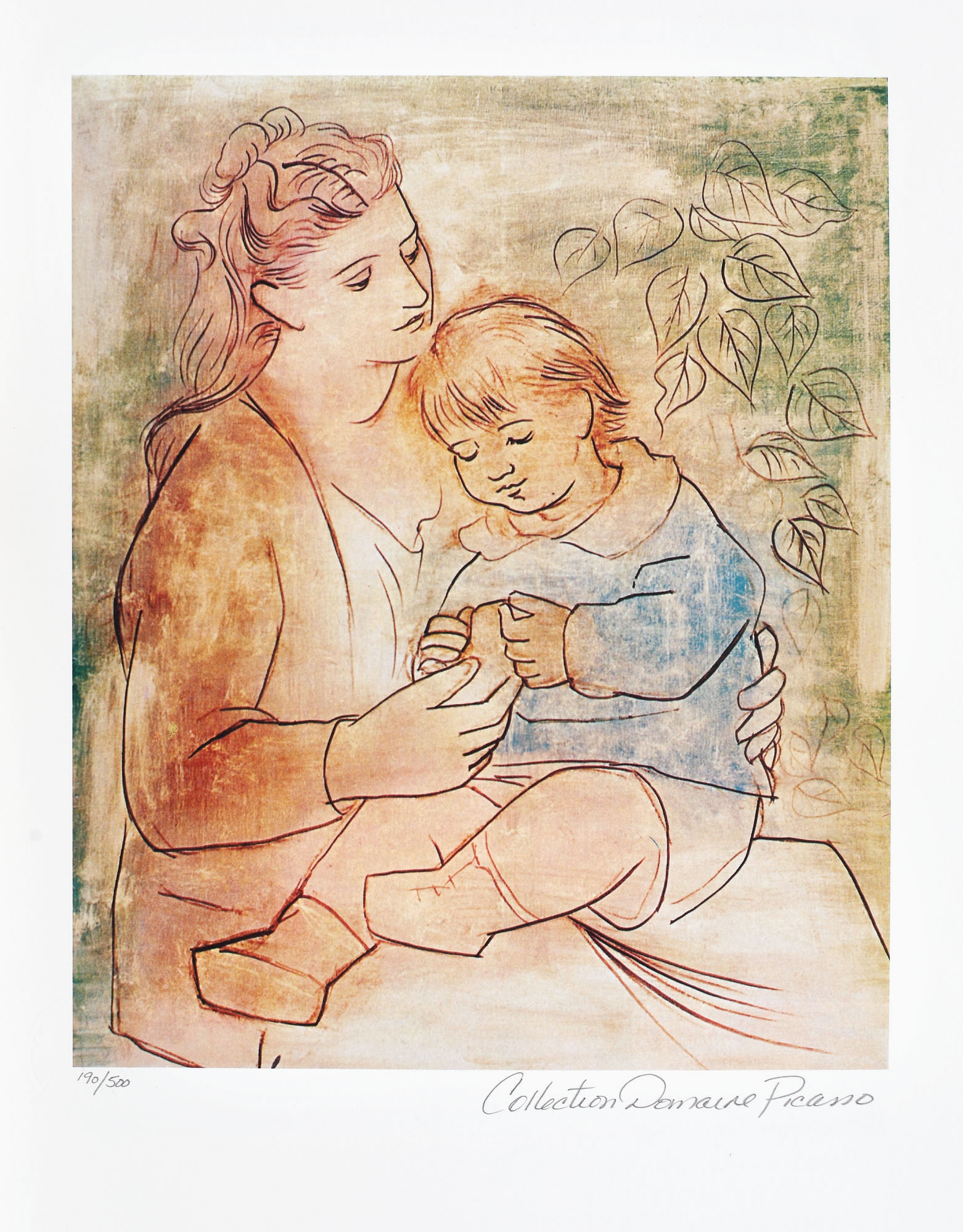 notat dreapta jos, sub cadru, în creion, ”Collection Domaine Picasso”; numerotat stânga jos, sub cadru, în creion, ”190/500”