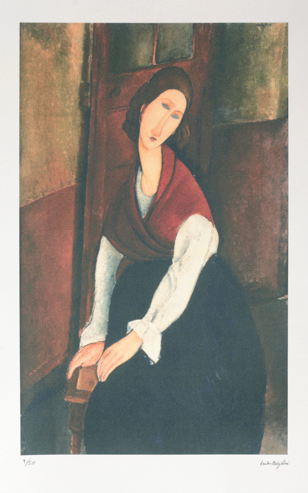 semnat dreapta jos, sub cadru ”Amedeo Modigliani”; numerotat stânga jos, sub cadru, în creion, ”9/50”; dreapta jos, ștampila editurii, ”Georges Israel Editeur"