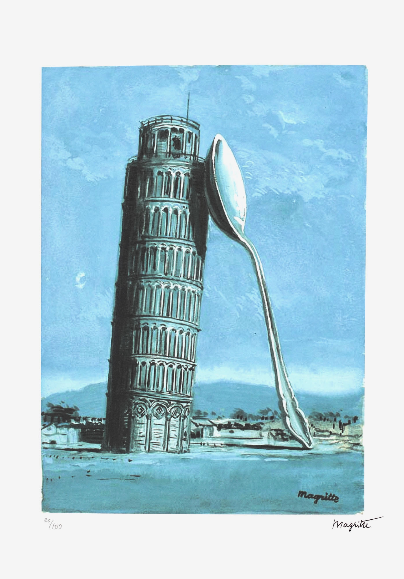 semnat dreapta jos, sub cadru, ”Magritte”; numerotat stânga jos, sub cadru, în creion, ”22/100”; stânga jos, ştampilă de editurii, "SPADEM, Paris”