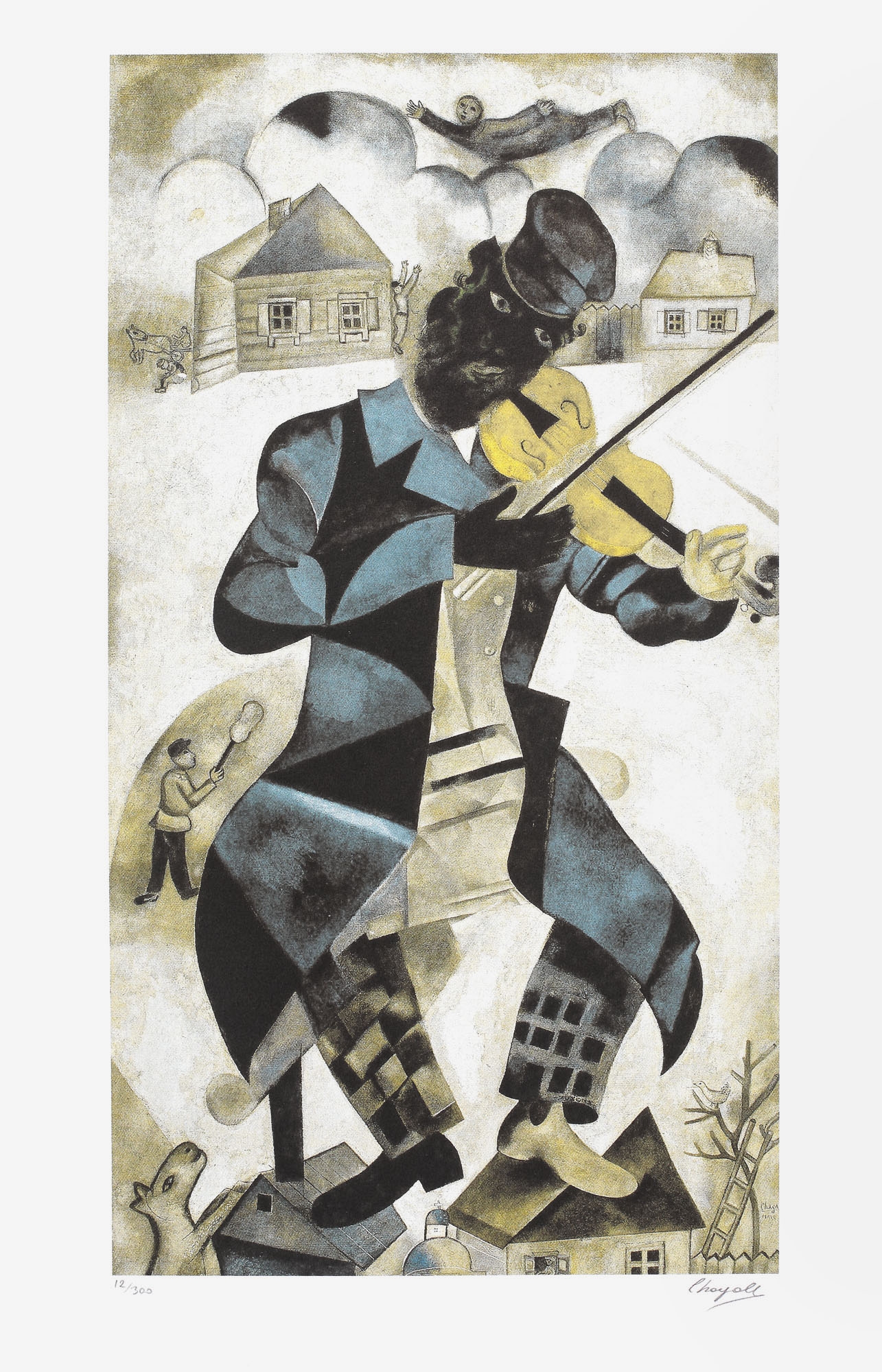 semnat dreapta jos, sub cadru, în creion, "Chagall"; numerotat stânga jos, sub cadru, în creion, "12/300"; stânga jos, ştampila editurii, "SPADEM, Paris"