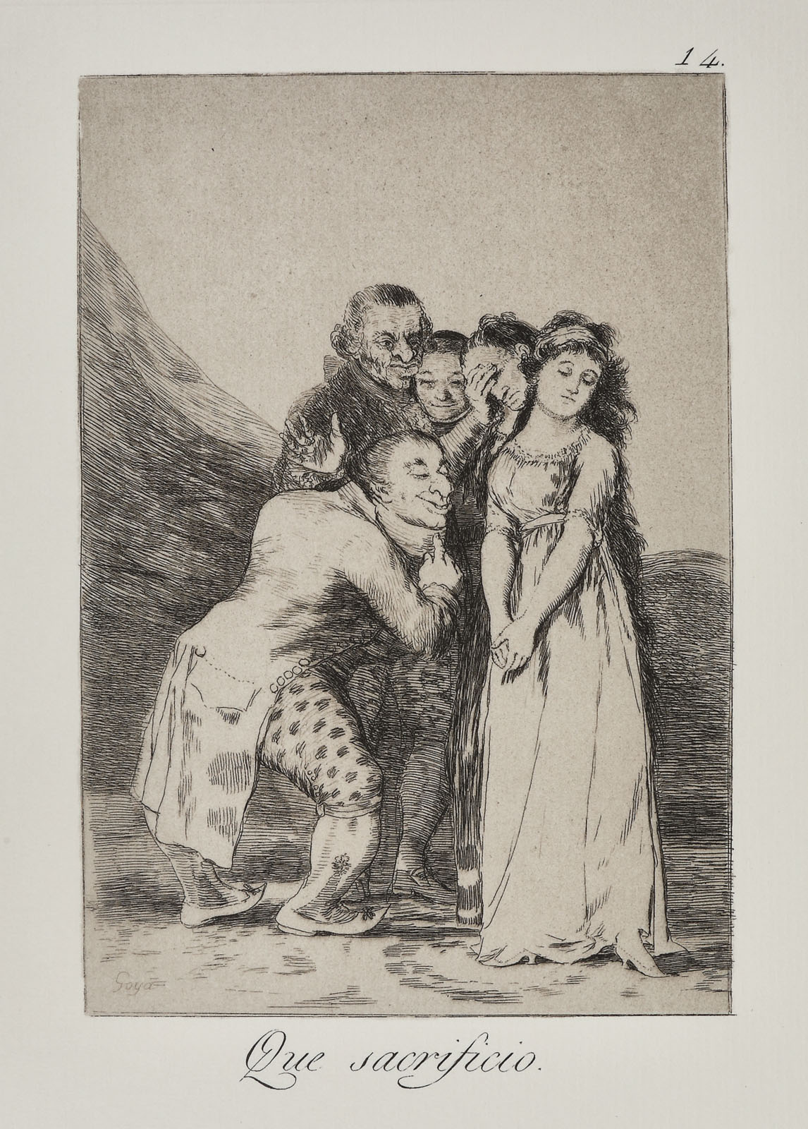 Rupându-se dramatic de impozant și de maiestuos, artistul se va remarca printr-un stil de sarcasm emoțional și realism, explorând suferința și ororile vieții. Inovațiile sale picturale îi vor atesta poziția de pictor modern, având un impact proeminent în arta secolului XIX. Pe lângă tablourile realizate la comandă, artistul va realiza și gravuri pe cicluri tematice, precum seria Los Caprichos, realizată între anii 1796-1798, unde face introducerea într-o lume fantastică ce invadează mintea, în timpul visului, viziunea de coșmar simbolinzând o lume împotriva rațiunii. Ediția este recentă (2008), autorizată, de calitate excepțională.(G.M.)