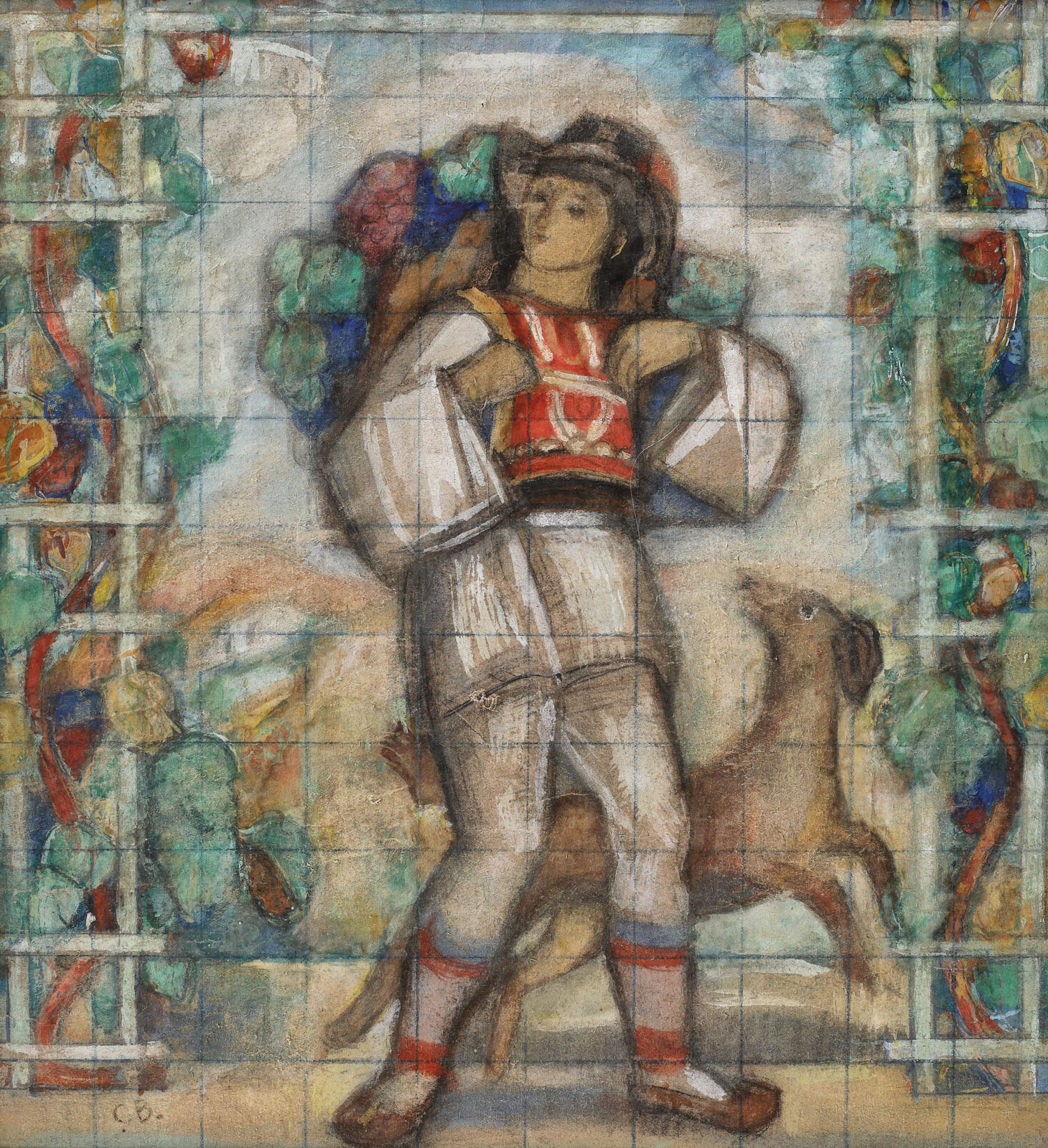 semnat stânga jos, în creion, "CB"