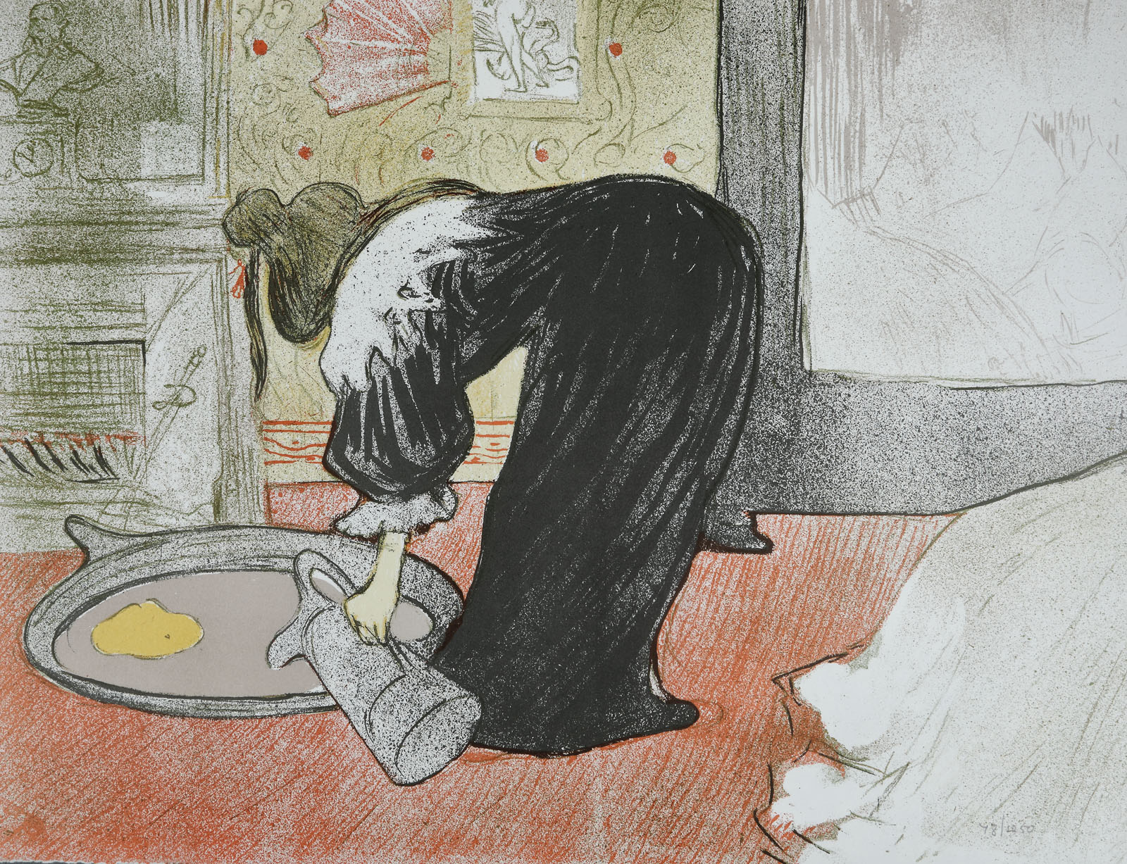Artist de avangardă și reprezentant al boemei, Henri Toulouse Lautrec este binecunoscut pentru litografiile, ilustrațiile și afișele ce prezentau viața decadentă de noapte a Parisului la sfârșit de secol XIX. Opera sa este caracterizată de lucrări provocatoare ce înfățișează teatrele, cabaretele, bordelurile și cafenelele din cartierul boem Montmartre. Continuând tematica operei sale, va realiza în 1894 un portofoliu de litografii ce va surprinde viața din interiorul unui bordel parizian, focusul fiind îndreptat asupra portretizării femeii, surprinsă în ecouri de Art Nouveau și va reprezenta una din cele mai remarcabile creații litografice realizate de artist. (G.M.)