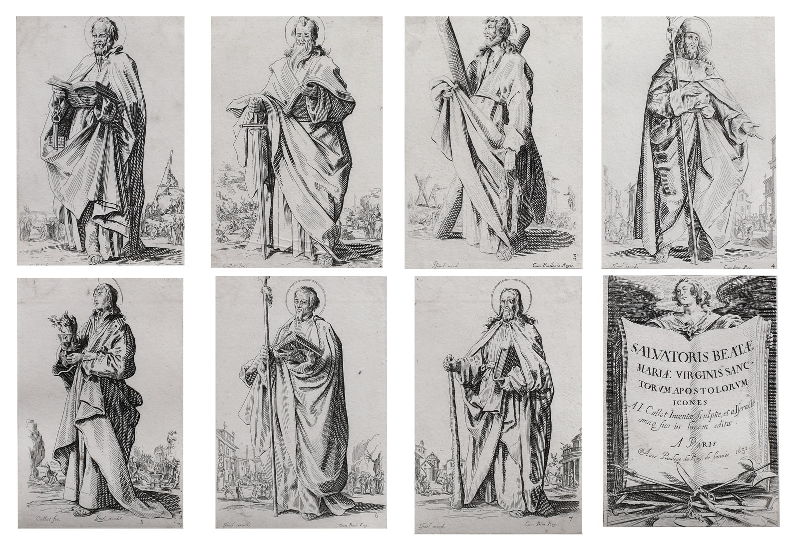 Planşele 1- 9 (Frontispiciu şi 7 dintre apostoli) din seria de 16 - Salvatoris Beatae Mariae Virginis Sanctorul Apostolorum Icones, 1631, editor Israel Henriet