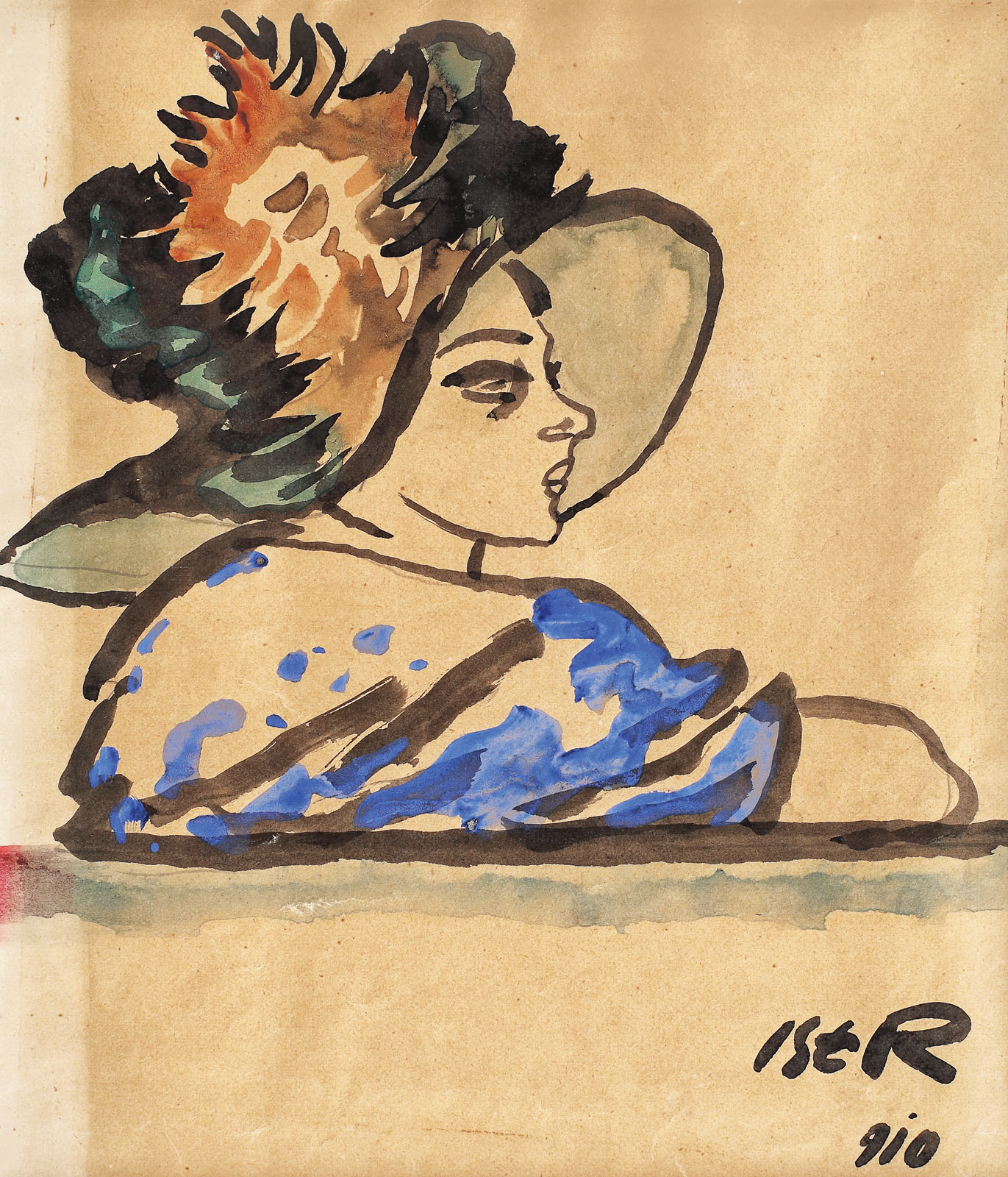 semnat și datat dreapta jos, cu negru, "ISER, (1)910"