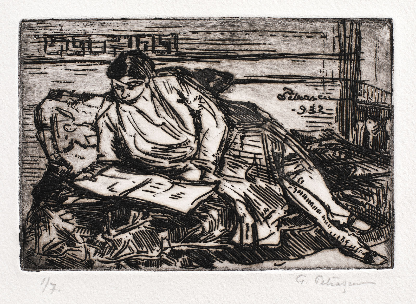 semnat lateral dreapta, în placă, "Petrașcu, (1)932"