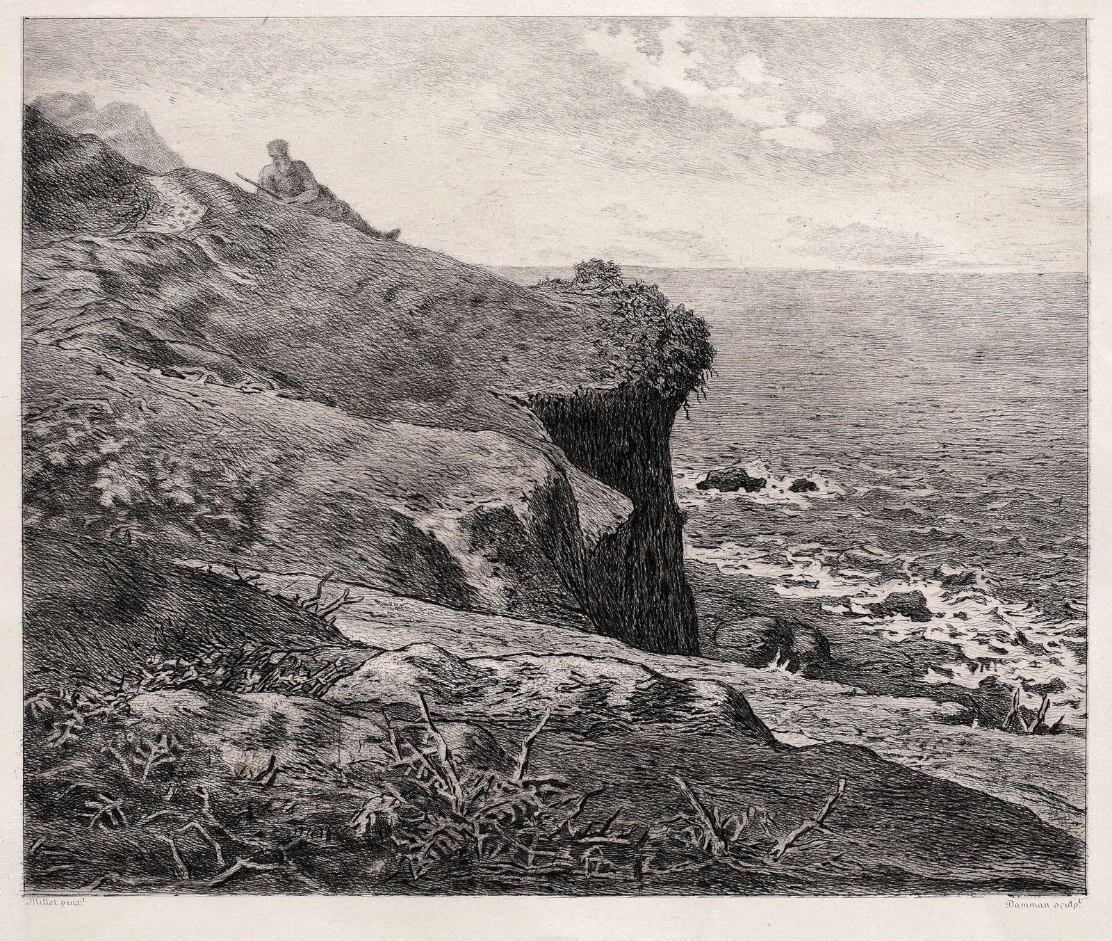 semnat stânga jos, sub cadru, "Millet pinx"; semnat dreapta jos, sub cadru, "Damman sculpt"