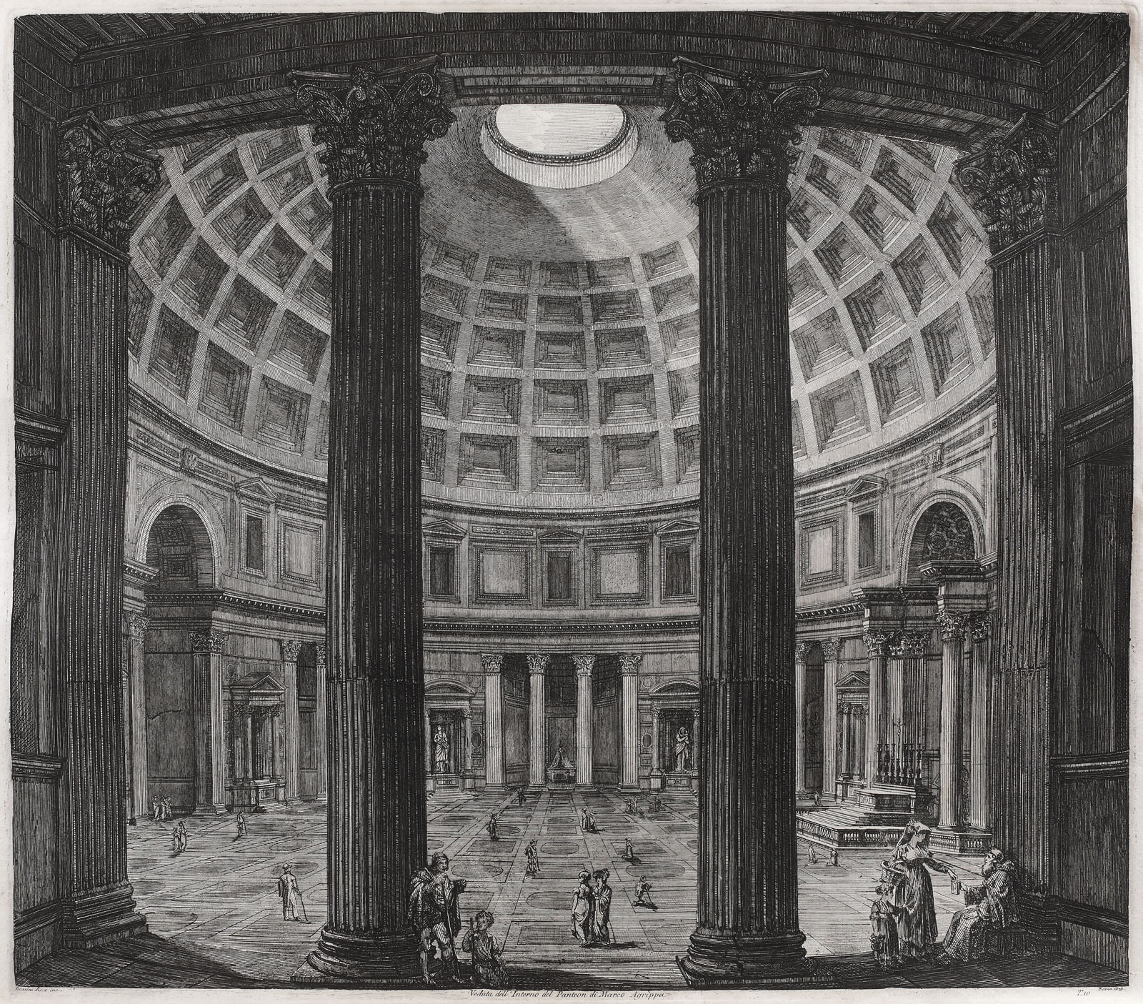 semnat, stânga jos, sub cadru, gravat, "Rossini dis. e inc."; notat dreapta jos, gravat, sub cadru, "Intorno del Panteon di Marco Agrippa, Roma 1828 / T. 10"