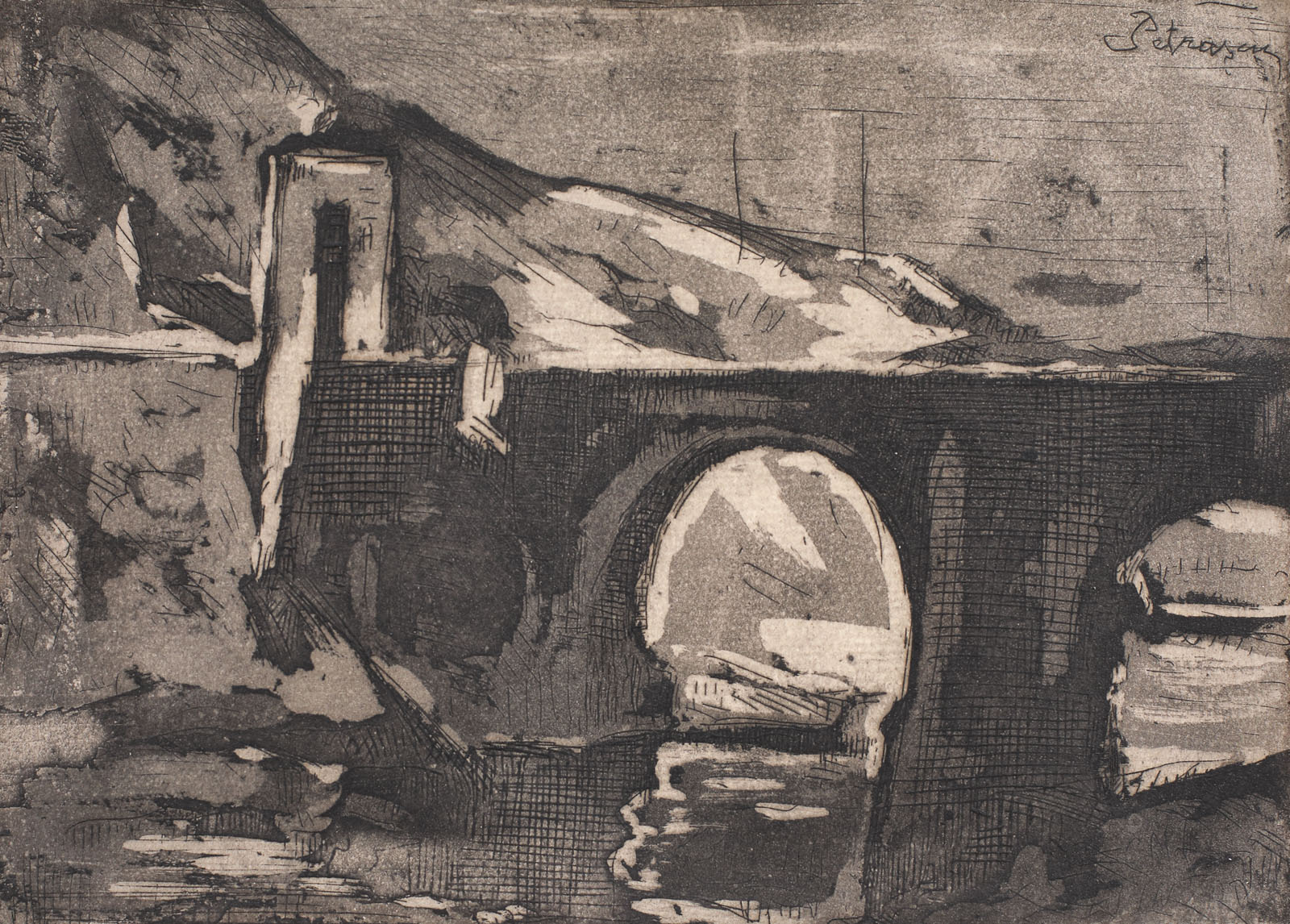 semnat dreapta sus, gravat în placă, "Petraşcu"