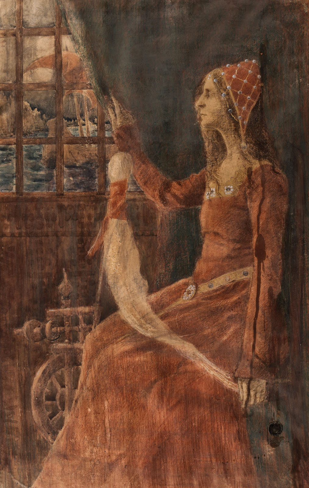 Ca un urmăritor neînduplecat al idealului artistic, Pallady își începea creația într-o ambianță simbolistă pe care o deprindea în atelierele de la Paris, fiindu-i insuflată de maestrul Gustave Moreau, unul dintre cei mai importanți reprezentanți ai curentului. Alături de simbolism, artistul va adauga o tentă poetică compozițiilor sale, înfățișându-și personajele într-un sfumato spectral, unde umbrele, penumbrele și luminile se întâlnesc. Aceste trăsături le va atribui unor opere precum Torcatoare, un portret compozițional ce însumează cele două nuanțe amintite. Povestea Torcatoarei va fi țesută în jurul simbolicului de tip wagnerian și al operei Olandezul zburător, inspirată din romanul satiric al lui Heinrich Heine. Opera rezumă sacrificiul personajului Senta, eroina care îl va salva pe Olandez de chinul rătăcirii eterne. În opera sa însă, Pallady, va reuni într-o interpretare particulară atributele eroinei pe care și-o închipuie sub statutul unei torcătoare, careia îi va reda chipul mamei sale în tuse delicate de acuarelă, ceracolor şi creion, surprinsă în șederile sale sezoniere de la moșia de la Coada Stâncii, unde petrecea alături de familia sa. Peisajul creat ne prezintă un Pallady romantic ce își alege elementele compoziționale sub semnul sublimului, alături de medii fluide, precum aerul, apa, stâncile, cerul și marea elemente unite într-o măreață iluminare. Alături de descrierea mitică a atmosferei, artistul își materializează viziunile, înclinându-și atenția asupra geometriei ce merita atenția detaliilor. Osatura războiului de tesut, cadrul ferestrei, curbele draperiei grele sau fuiorul vor reprezenta primele „corespondențe” palladyene. Ceea ce intrigă cel mai mult însă, este chipul contemplator al Torcatoarei, absorbită de imaginea pe care i-o înfățișează orizontul dincolo de fereastra care îi anunță destinul și a carui ideal poate fi atins doar prin sacrificiu. Opera va figura la marea Retrospectivă din 1956, organizată de Muzeul de Artă, cu prilejul a împlinirii a 85 de ani de la nașterea artistului. (G.M.)