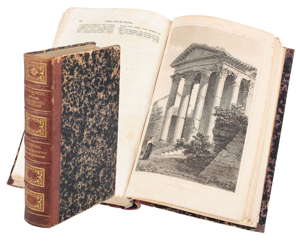 393. Abdolonyme Ubicini, Marcel Chopin, "Provinces danubiennes et roumaines", 35 gravuri și 4 hărți, Paris, 1856; exemplarul provine din biblioteca Ștefan Greceanu