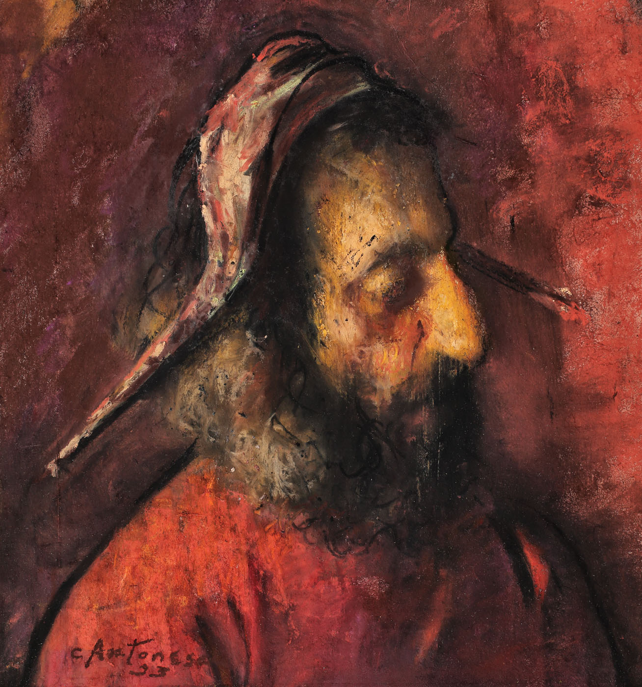 semnat şi datat stânga jos, cu brun, "C. Antonescu, (19)93"