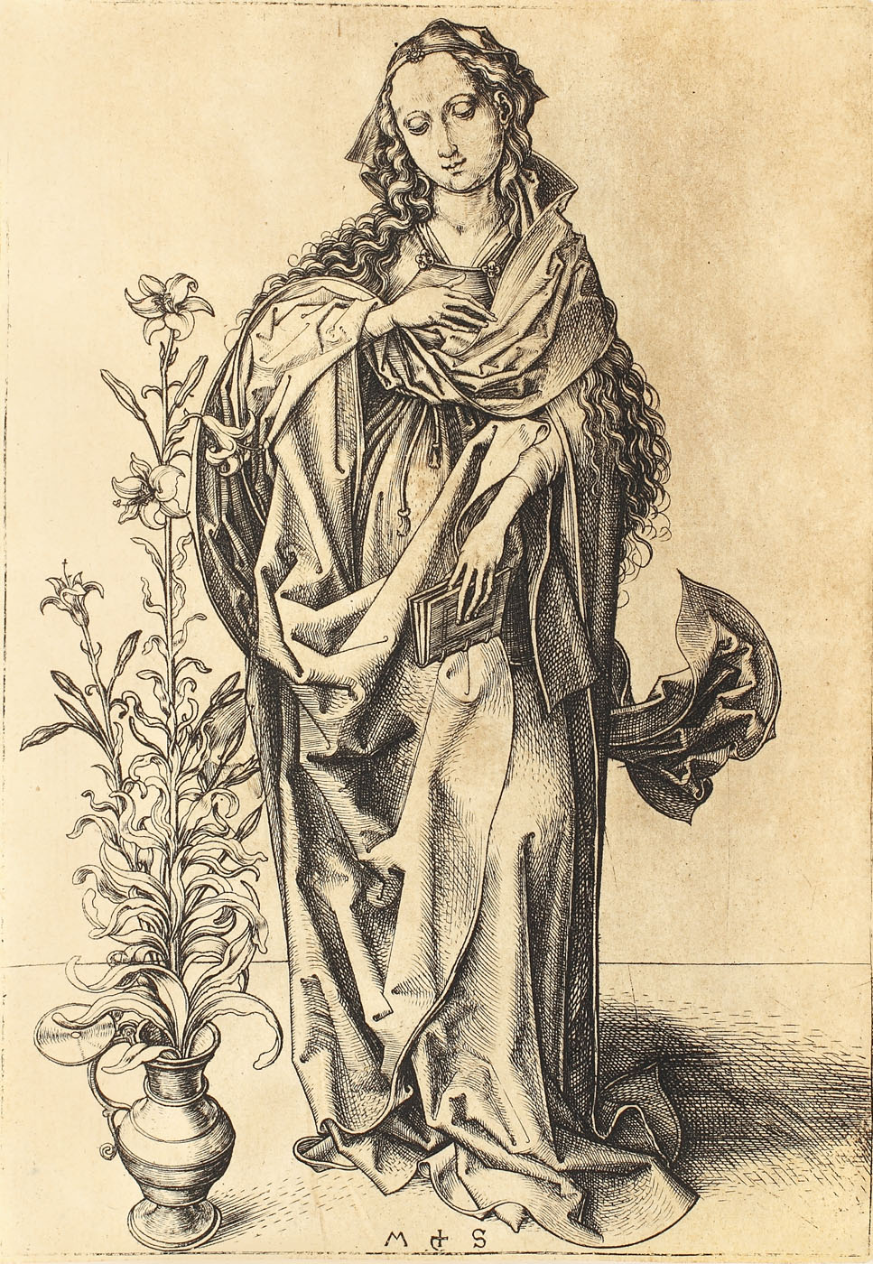 semnat, gravat, dreapta jos, în monogramă, "MS"