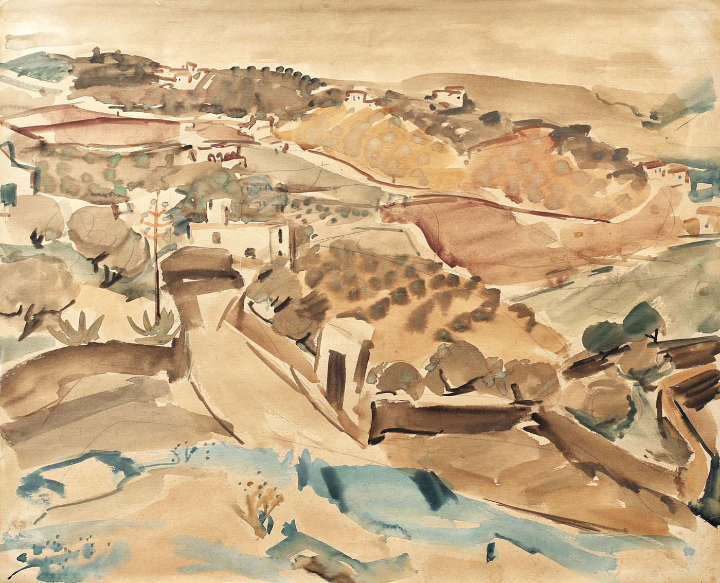 acuarelă și creion pe hârtie lipită pe carton