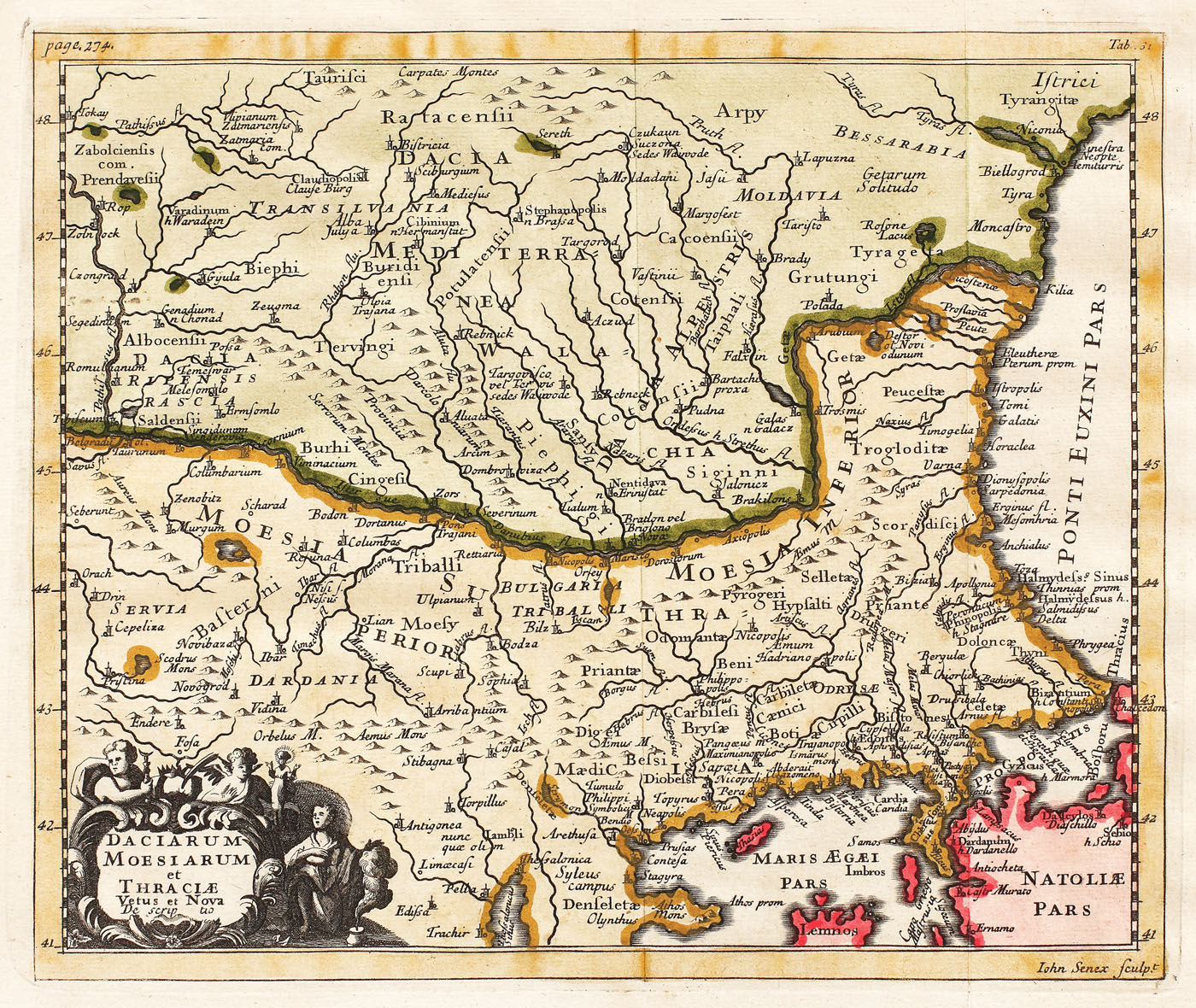 331. Hartă Dacia, Moesia şi Tracia, cca. 1711