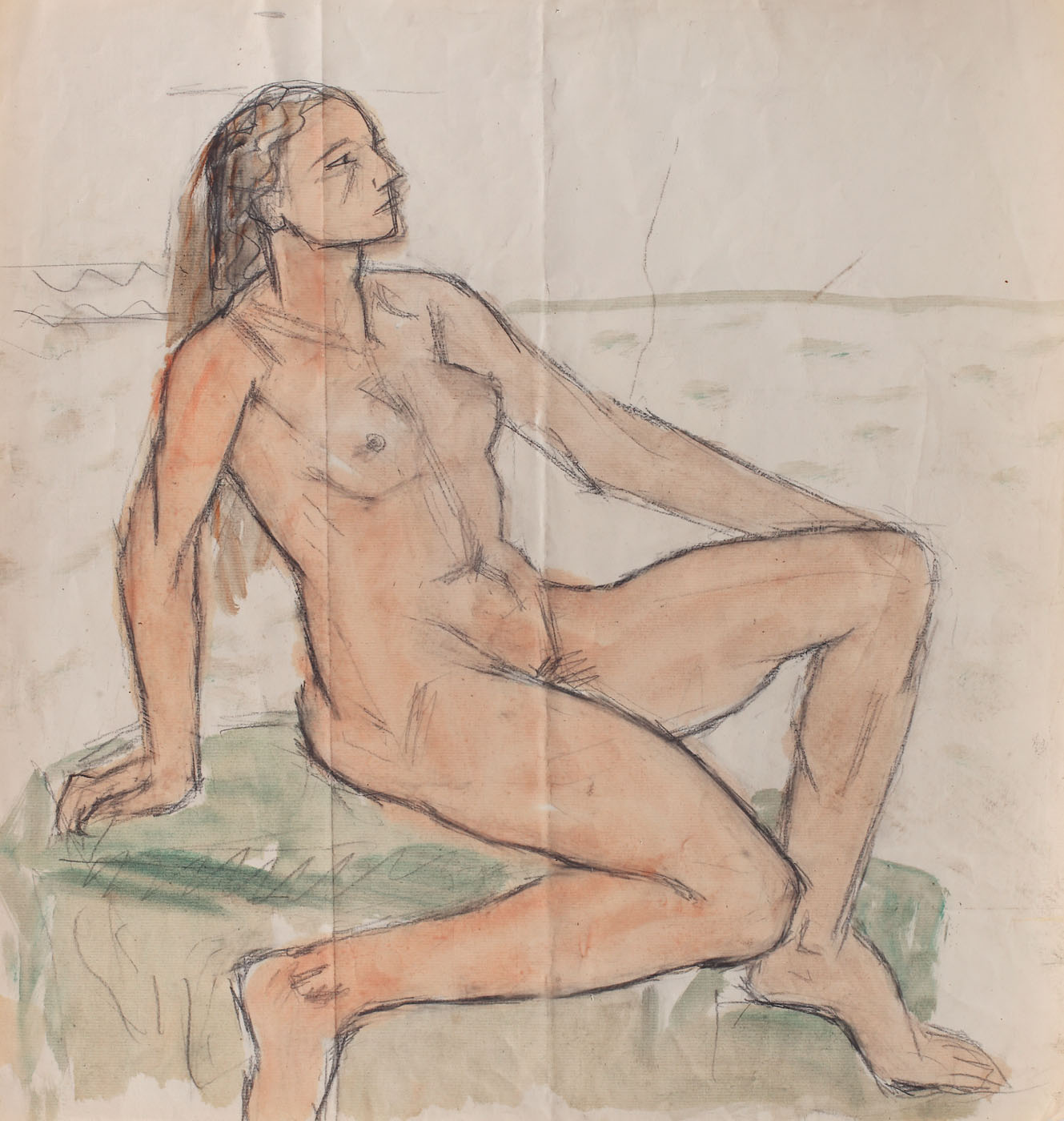 acuarelă și creion pe hârtie