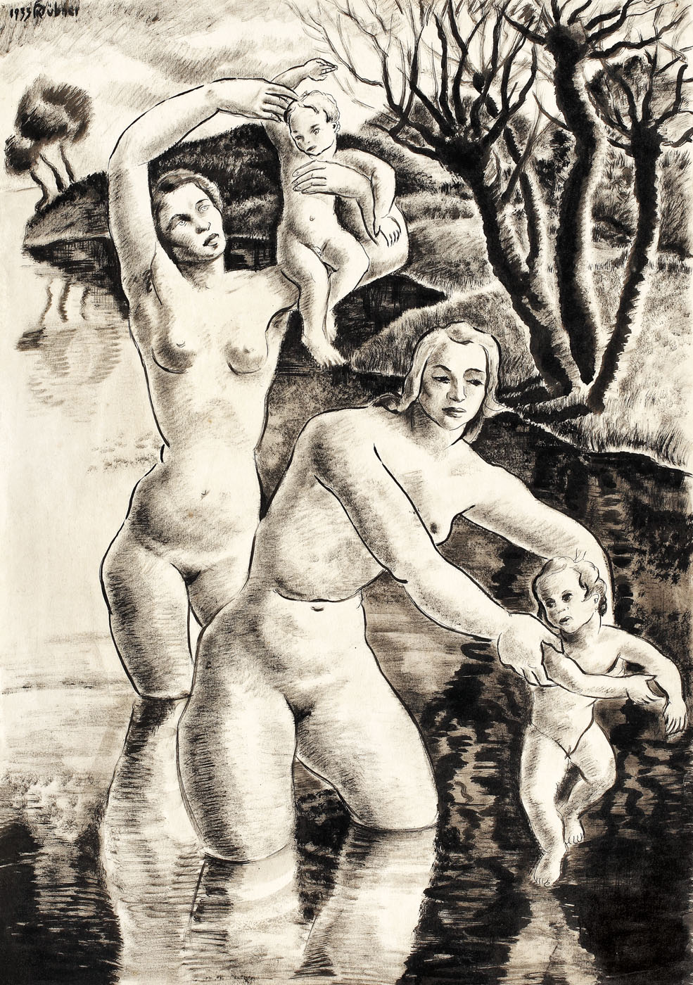 semnat și datat stânga sus, în tuș, "K. Hubner, 1933"