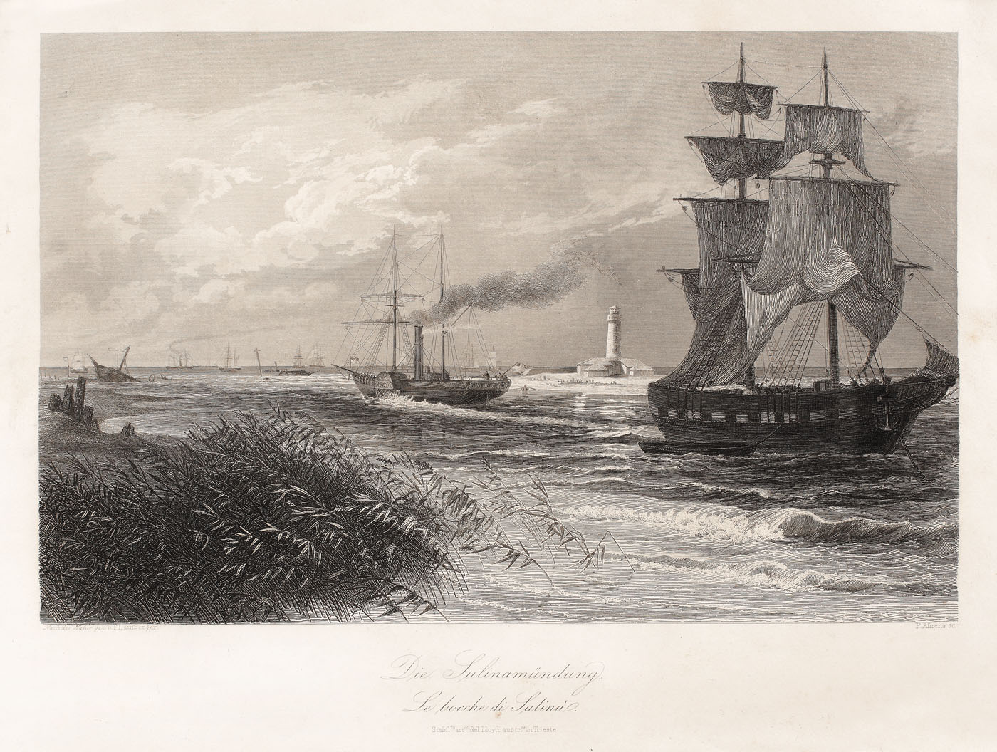 321. Litografie reprezentând vedere asupra Sulinei, după o gravură realizată de Ferdinand Laufberger