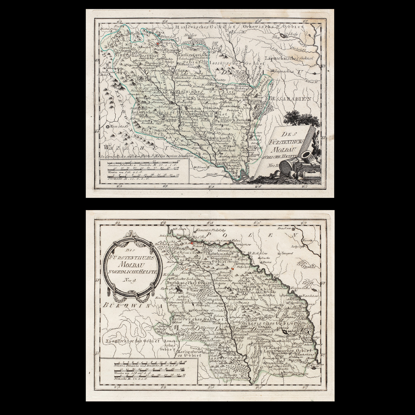 328. Lot de două hărți "Moldova de sus și Moldova de jos", de Joseph von Reilly, 1791