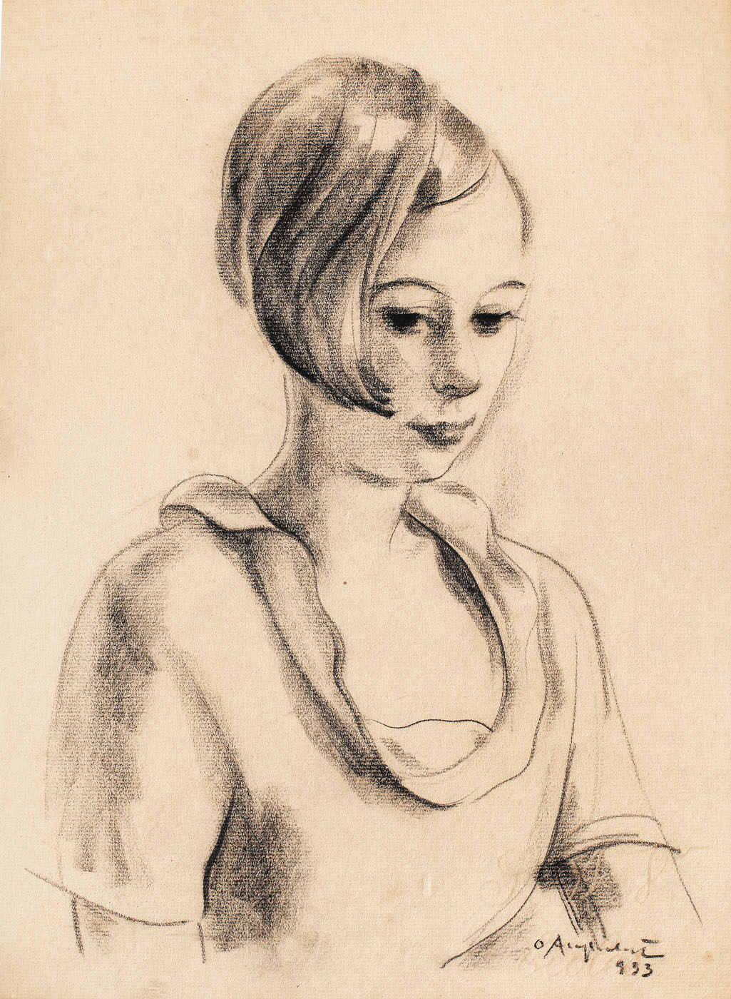 semnat și datat dreapta jos, cu negru, "O. Angheluță, (1)933"