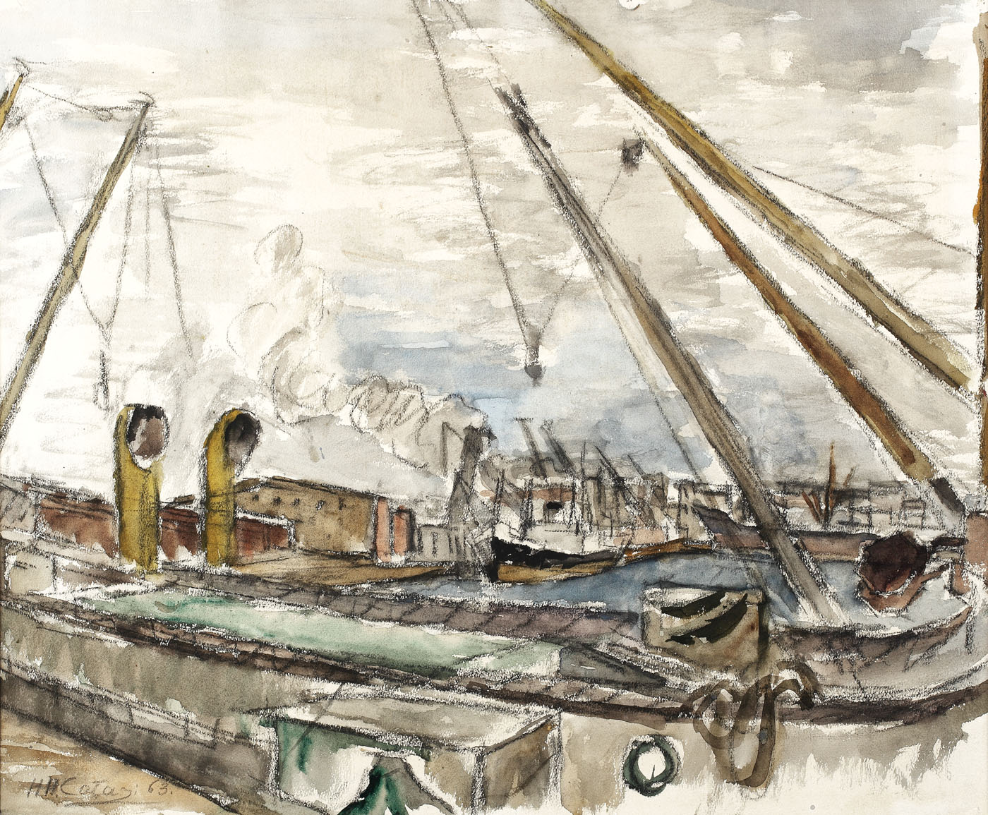 semnat şi datat stânga jos, în cărbune, "H.H. Catargi, (19)63"
