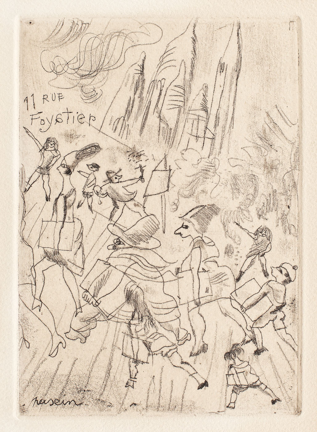 Créé à l'occasion de l'installation des Ateliers Lacourières au 11 rue Fayotier à Montmartre. Opera este inventariată și reprodusă în "Pascin: catalogue raisonné - Simplicissimus, gravures, lithographies, ilustrations, sculptures, objets", Yves Hemin, Guy Krohg, Klaus Perls, Abel Rambert, vol III, Paris, 2001, ref.109, pag.108.