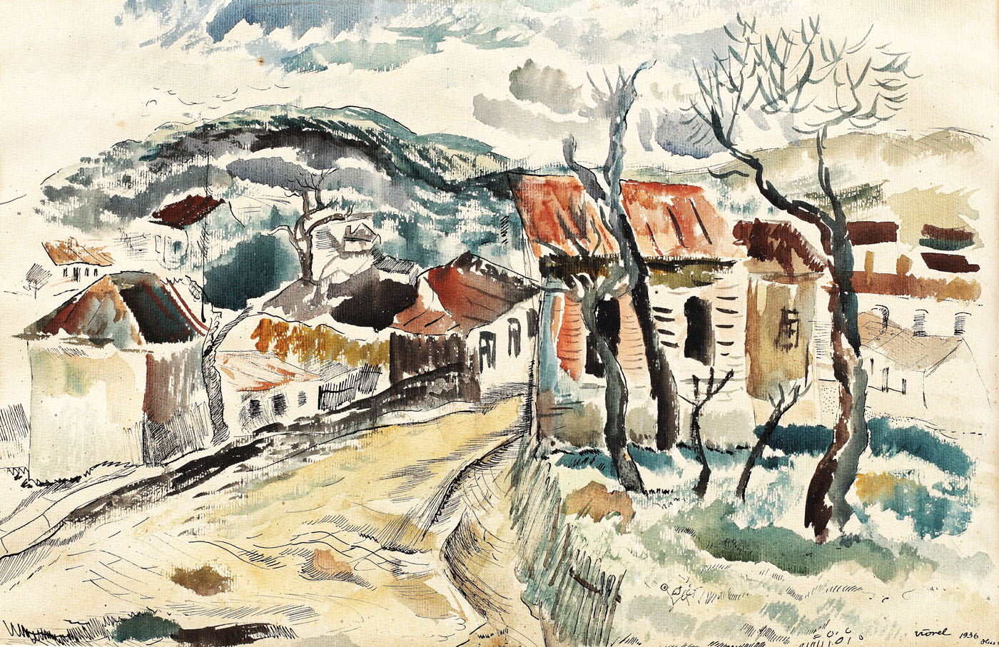 semnat, datat și localizat dreapta jos, cu negru, "Viorel, 1936, Huși"