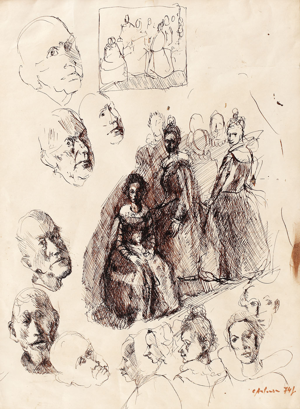 semnat şi datat dreapta jos, cu brun, "C. Antonescu, (19)74"