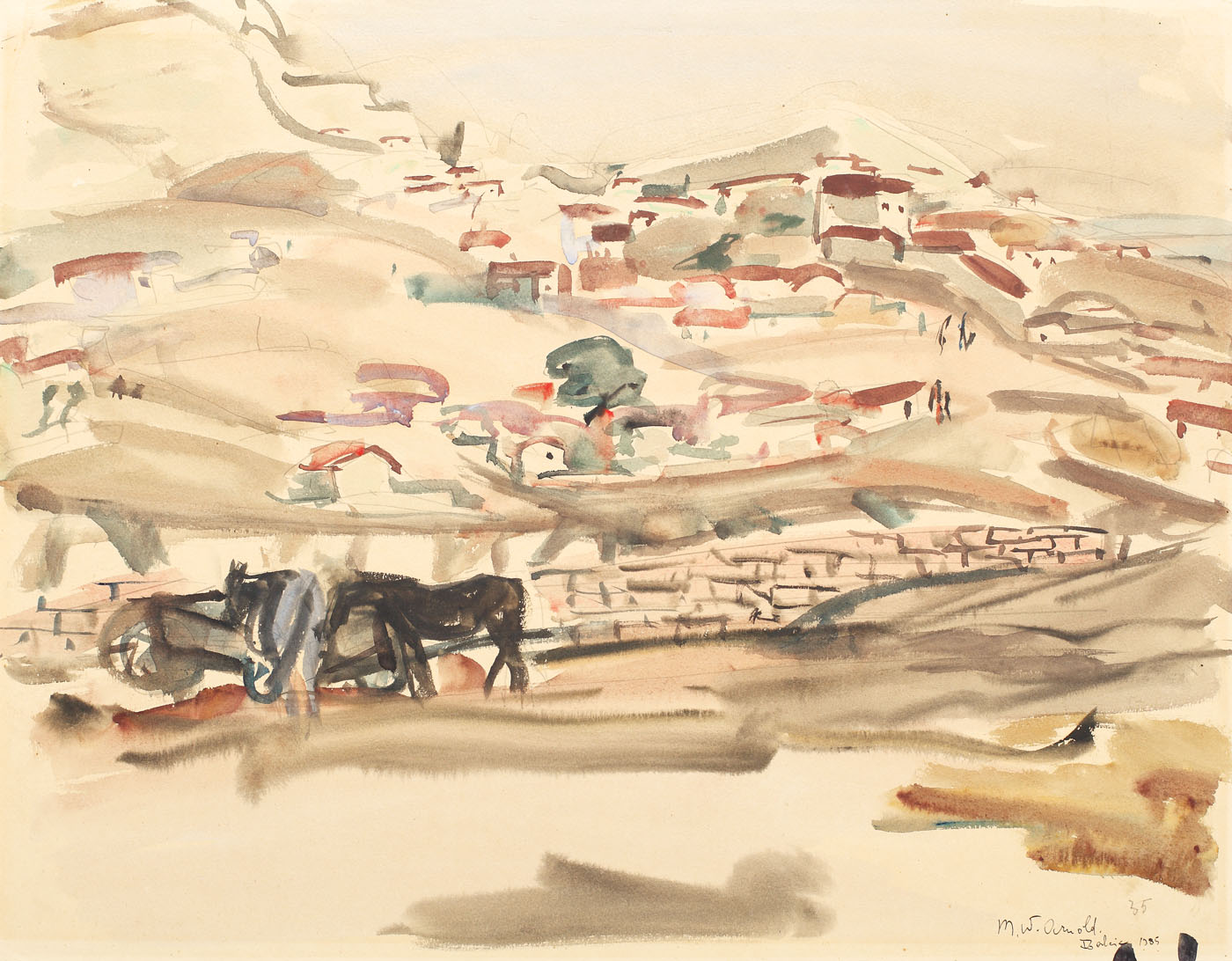 semnat, datat şi localizat dreapta jos, în peniţă, m.w. arnold, 1935, Balcic; menționat dreapta jos, în creion, numărul de categorie, 35