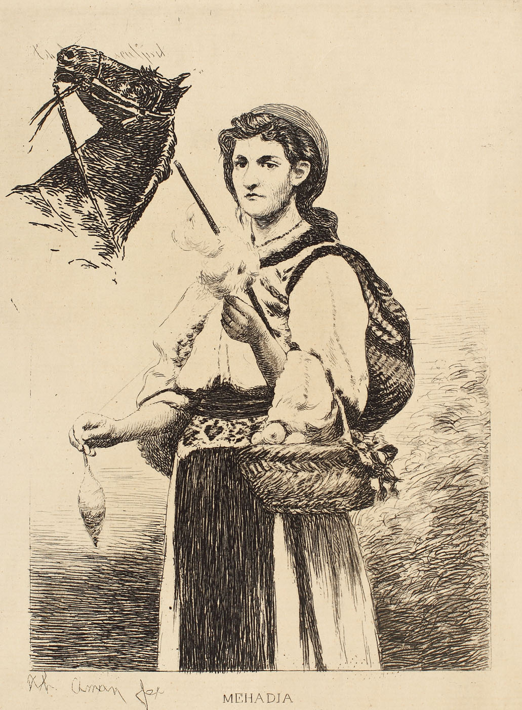 semnat, gravat, stânga jos, sub cadru, Th. Aman fec.; inscripţie gravată central jos, sub cadru, MEHADIA; semnat, gravat stânga sus, în cadru, Th. Aman sculpit