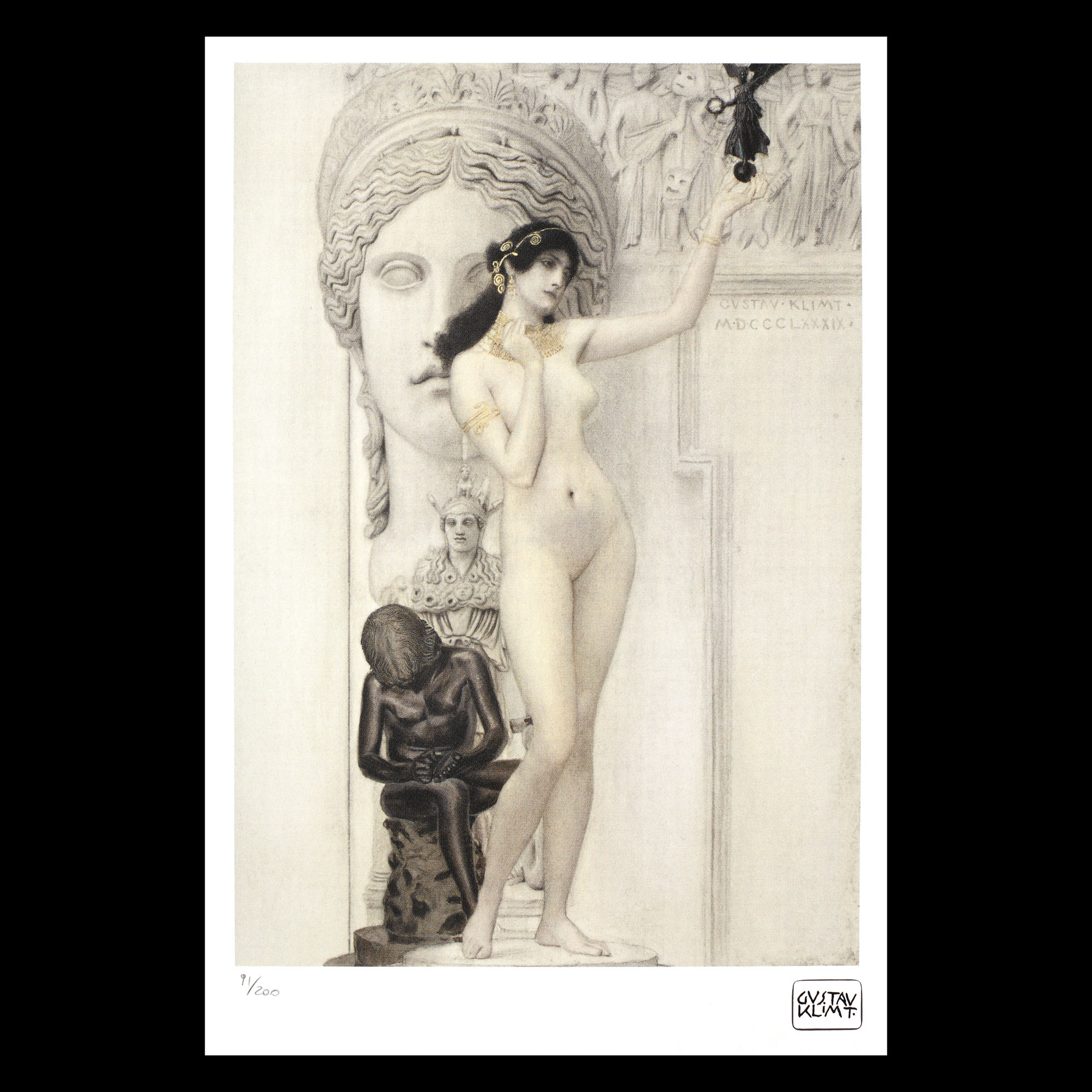 semnat dreapta jos, sub cadru, ”GUSTAV KLIMT”; numerotat stânga jos, sub cadru, în creion, ”91/200”