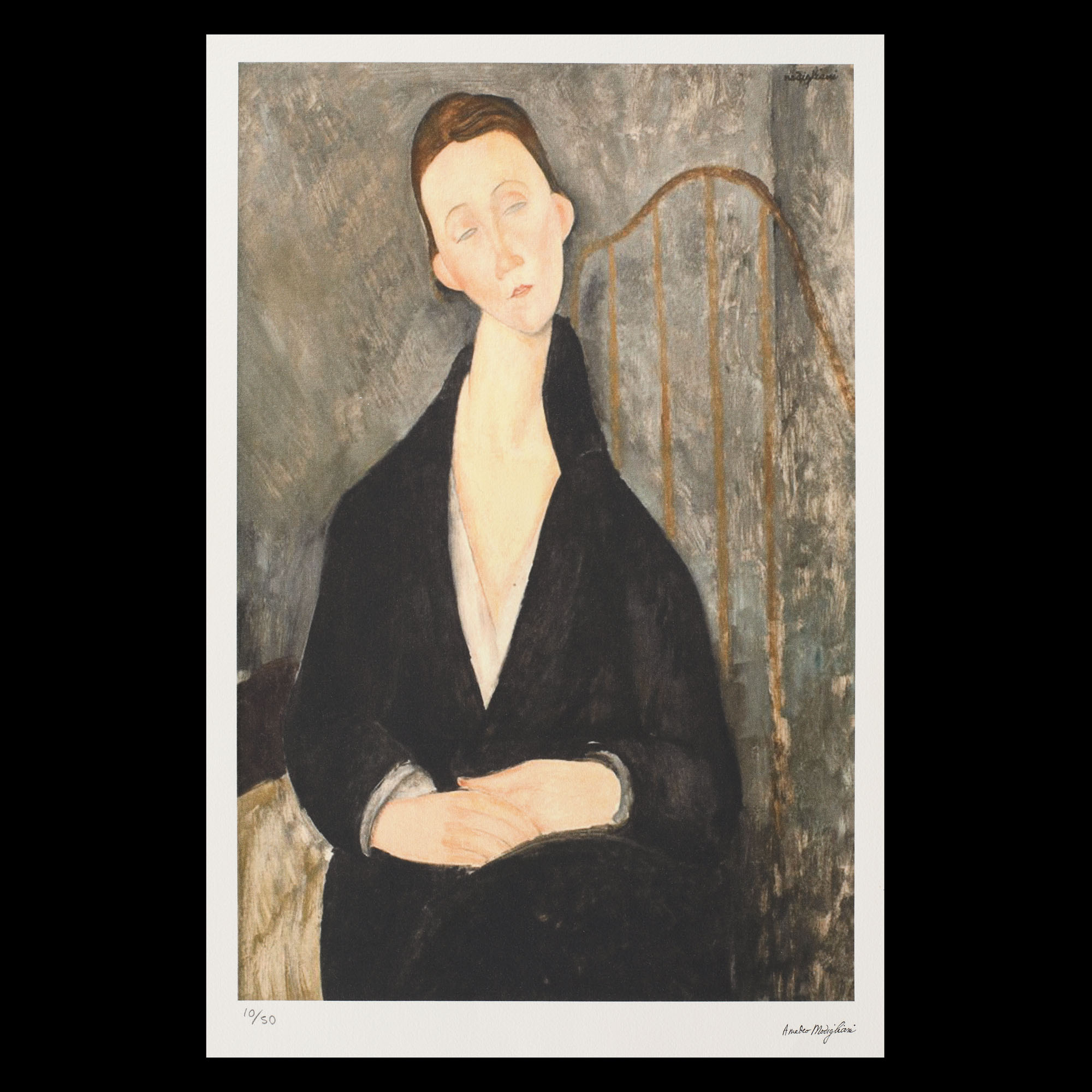 semnat dreapta jos, sub cadru, ”Amedeo Modigliani”; numerotat stânga jos, sub cadru, în creion, ”10/50”; stânga jos, ștampila editurii, ”GEORGES ISRAEL EDITEUR”