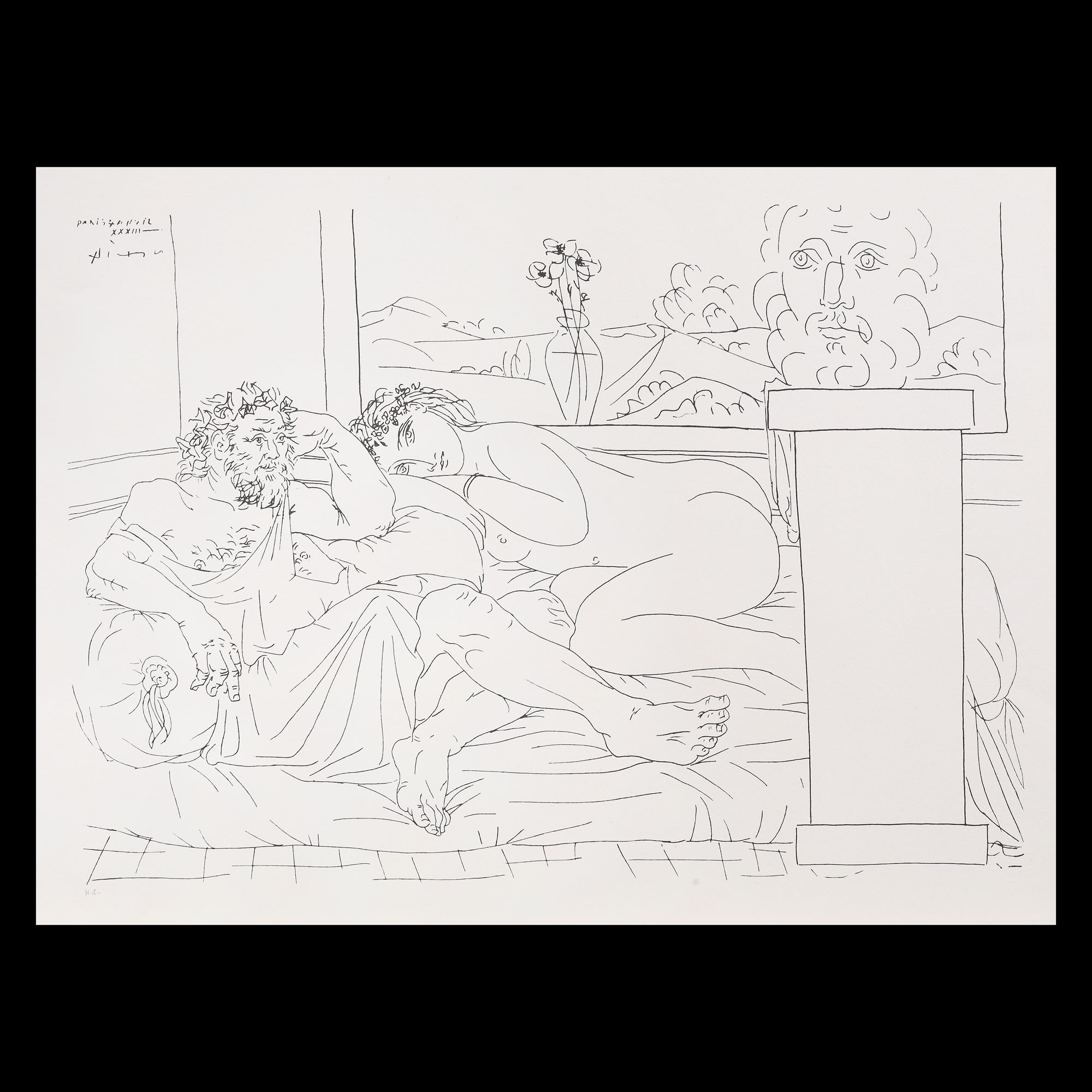 semnat, datat și localizat stânga sus, în placă, ”PARIS, 4 AVRIL, XXXIII, Picasso”
