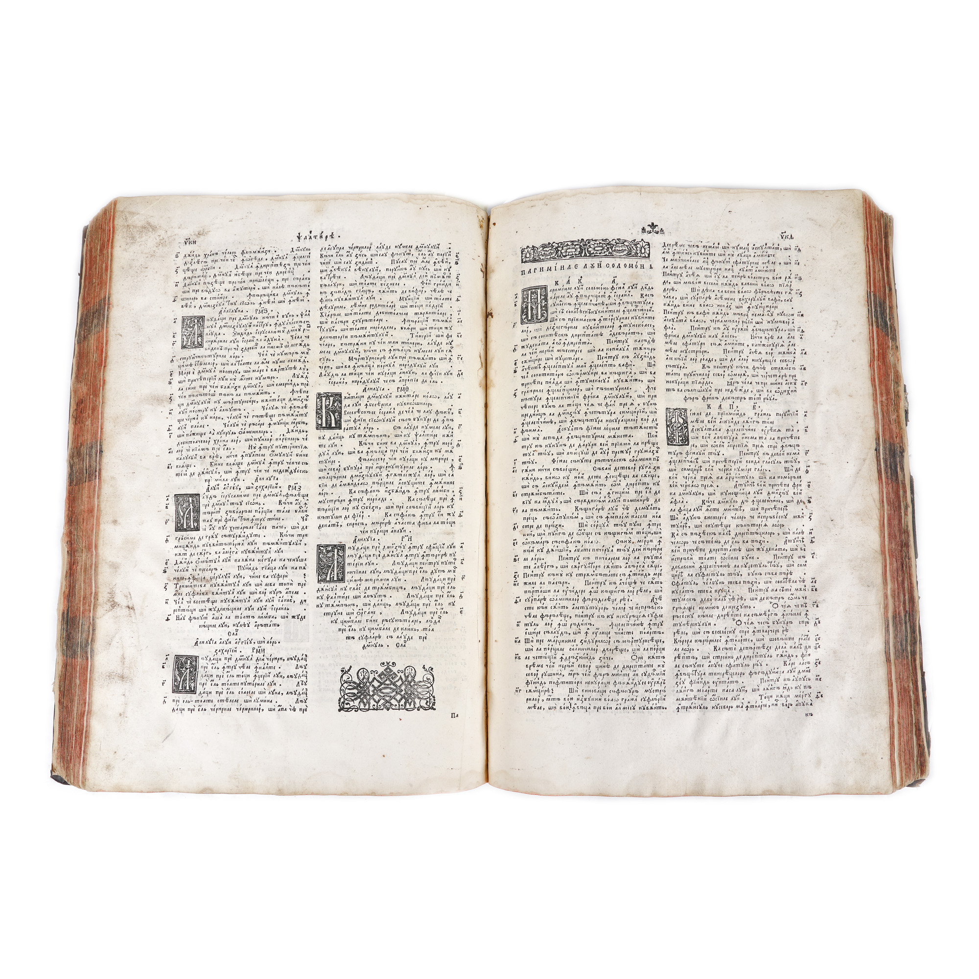 50Т. ”Biblia adecă Dumnezeiasca Scriptură”, zisă și "Biblia de la București", tipărită în timpul lui Şerban Cantacuzino, București, 1688, traducere din limba greacă în limba română de Radu și Șerban Greceanu, corectură finală asigurată de stolnicul Constantin Cantacuzino, exemplar complet, toate filele originale, coperți originale, relegate în cotor, raritate de colecție, provine din colecția criticului literar Șerban Cioculescu, înainte a făcut parte din colecția marelui vornic Gavrilă Drugănescu