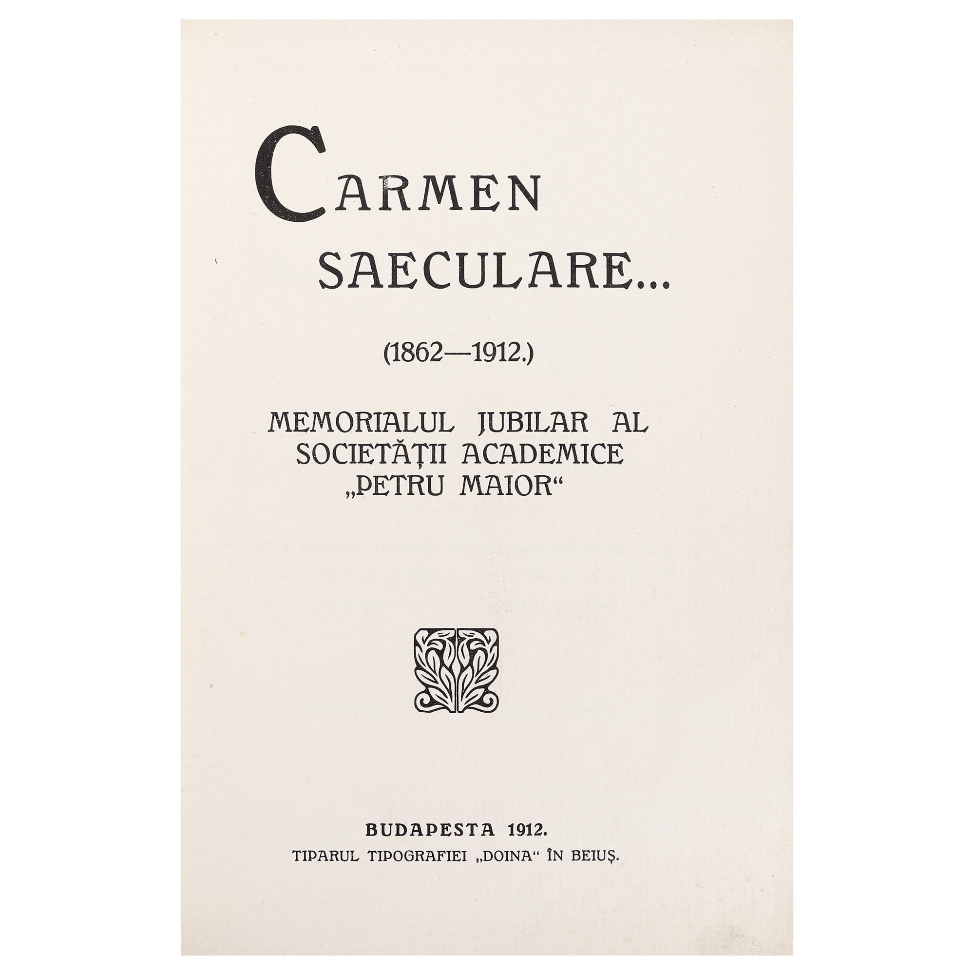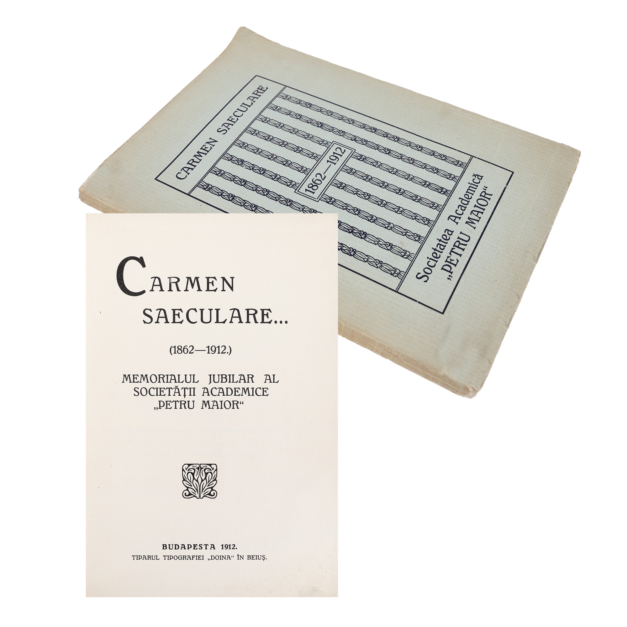 182. "Carmen saeculare... Memorialul jubiliar al Societății Academice Petru Maior", ediție princeps, Budapesta, 1912, provine din colecția criticului literar Șerban Cioculescu