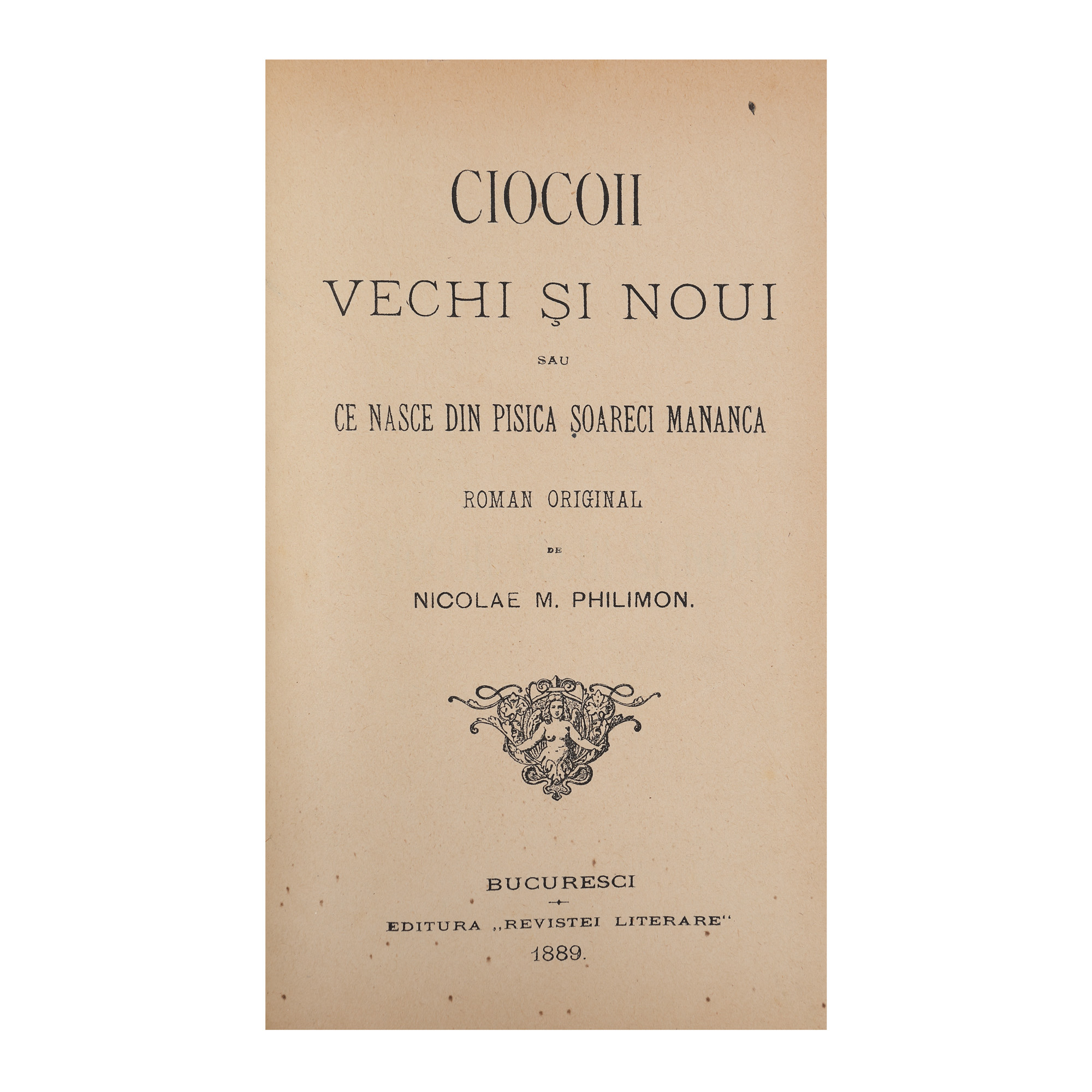 153. ”Ciocoii vechi și noi - Ce naște din pisică șoareci mănâncă”, de Nicolae Filimon, București, 1889, ediție bibliofilă